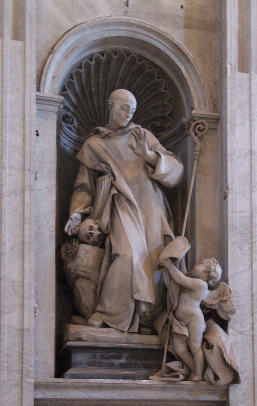쾰른의 브루노는 1030년경 독일 쾰른에서 태어나 랭스에서 신학을 공부하고 1055년경 사제로 서품된 인물이다. 랭스 신학교 학장을 역임하며 뛰어난 명성을 얻었고, 훗날 교황 우르바노 2세가 된 오도 등을 양성했다. 랭스 교구 사무처장으로 활동하며 부덕한 대주교 마나세와 갈등을 겪은 후, 주교직과 교황의 제안을 거절하고 은둔 생활을 선택했다. 1084년 6명의 동료와 함께 카르투시오회를 창설하여 수도 생활의 모범을 보였으며, 1101년 칼라브리아에서 사망했다. 그는 카르투시오회의 창설자이자, 학자, 교육자로서 학문적, 영성적으로 큰 영향을 미쳤으며, 캘리포니아의 산 브루노 크릭의 이름의 유래가 되기도 했다.