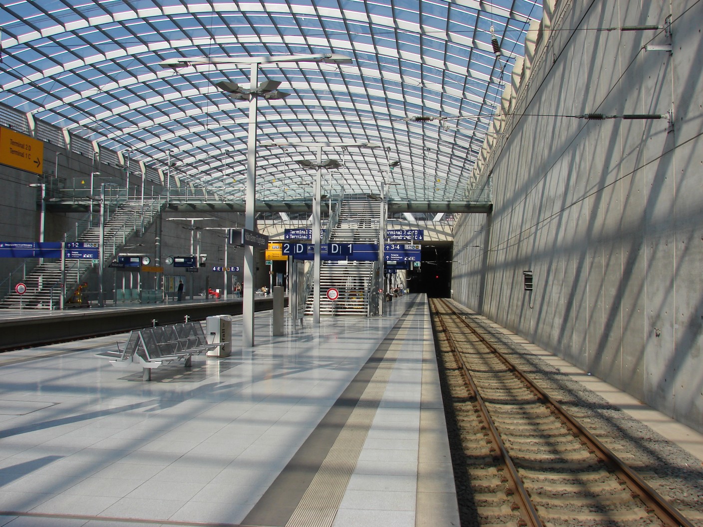 두 탑승동의 10개 주기장에는 탑승교가 설치되어 있고, 나머지 3개는 탑승 계단을 이용한다. 활주로에는 여러 대의 버스 탑승 주기장도 있다. 터미널 1은 유로윙스, 루프트한자, 오스트리아 항공이 주로 이용하며, 대부분의 육상 체크인 시설을 사용한다.[16] 터미널 1은 기차역과 직접 연결되어 있다.