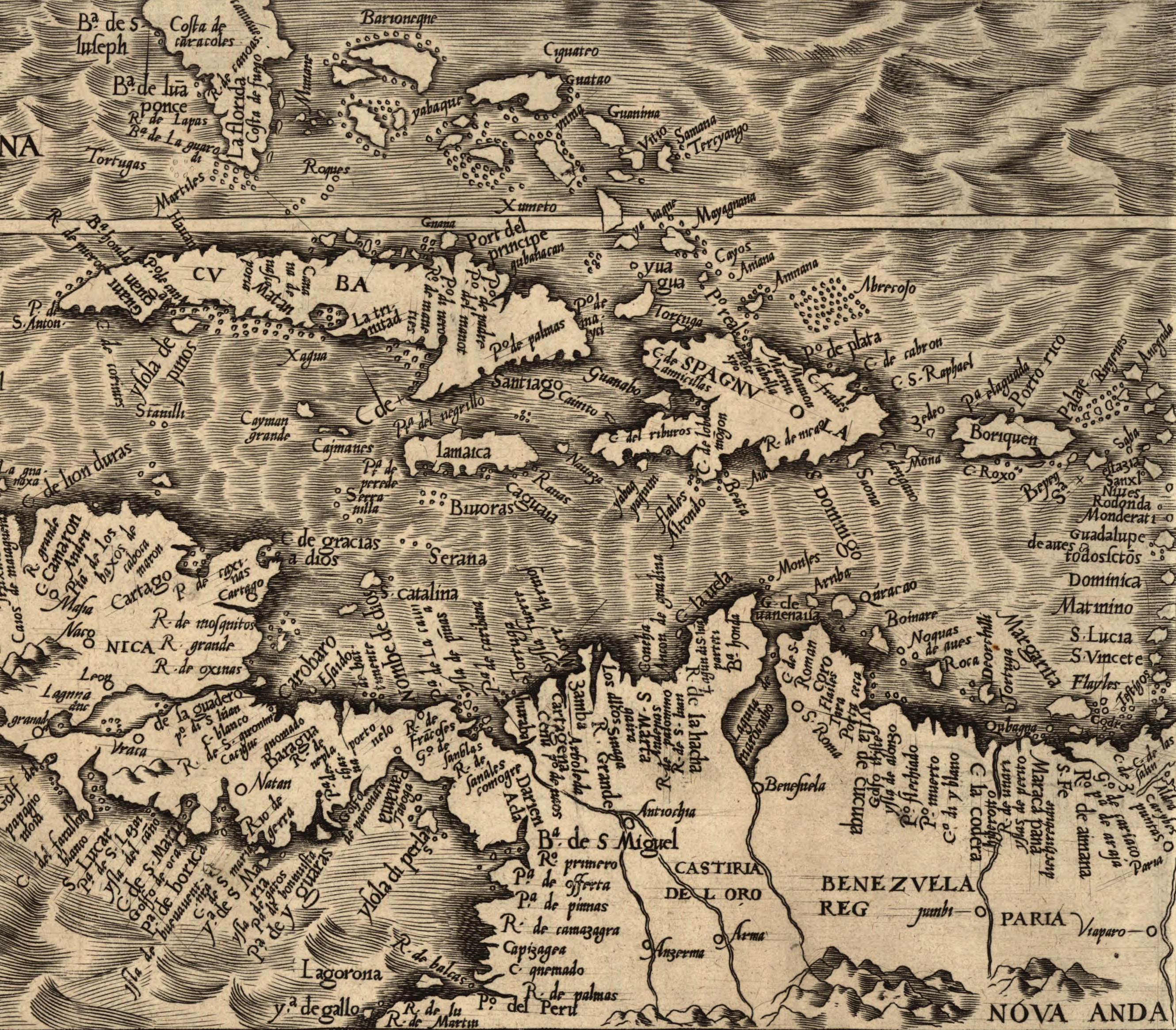 Americae sive qvartae orbis partis nova et exactissima descriptio / avtore Diego Gvtiero Philippi Regis Hisp. etc. Cosmographo ; Hiero. *** excude 1562 ; Hieronymus *** excude cum gratia et priuilegio 1562. Cock's 1562 map