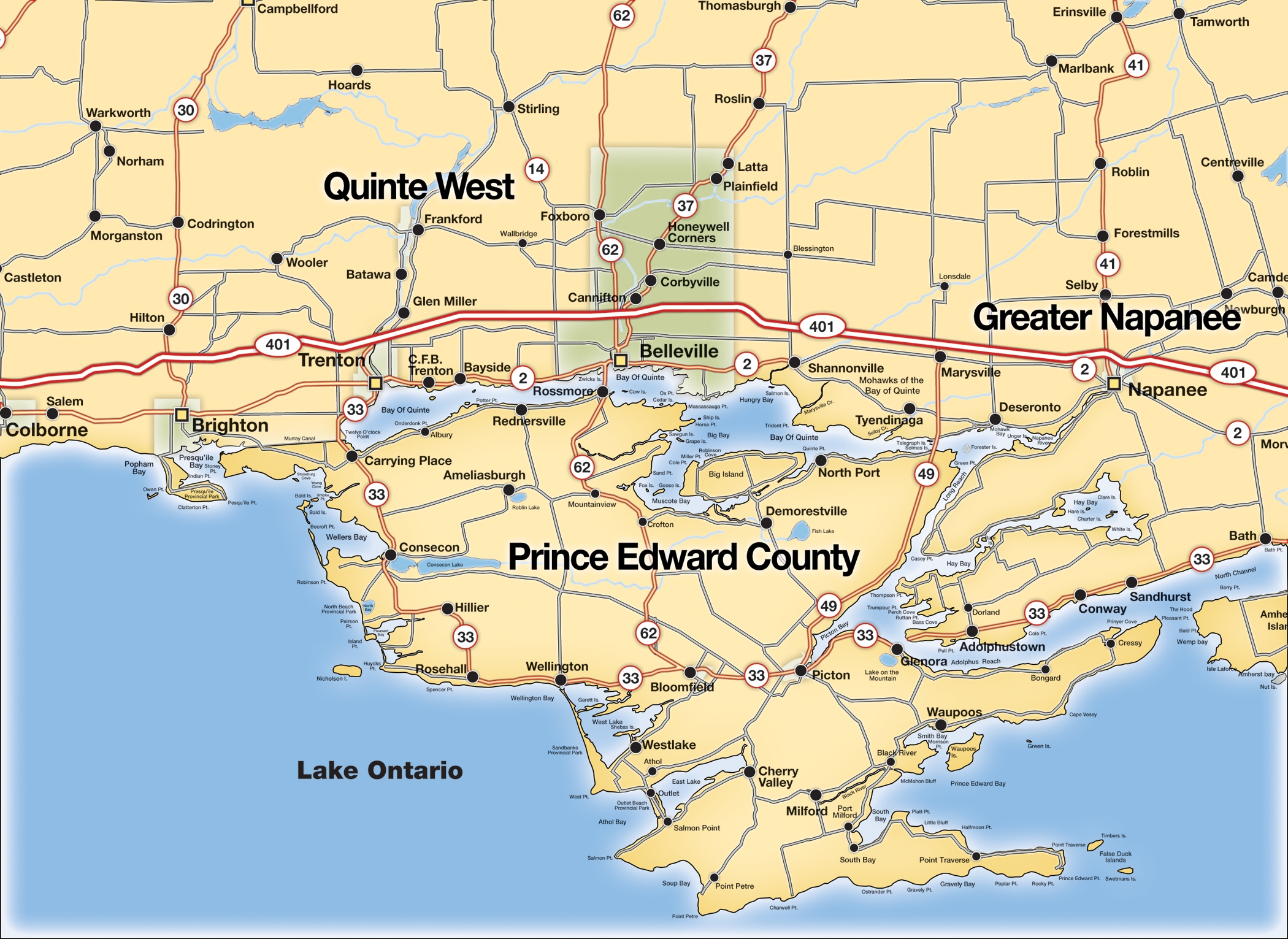 그레이터 베이 오브 퀸트 지역은 브라이튼, 퀸트 웨스트, 벨빌, 프린스 에드워드 카운티, 그레이터 나파니 자치구와 타이엔디나가 모호크 자치구를 포함하며, 전체 인구는 20만 명이 넘는다.[4]