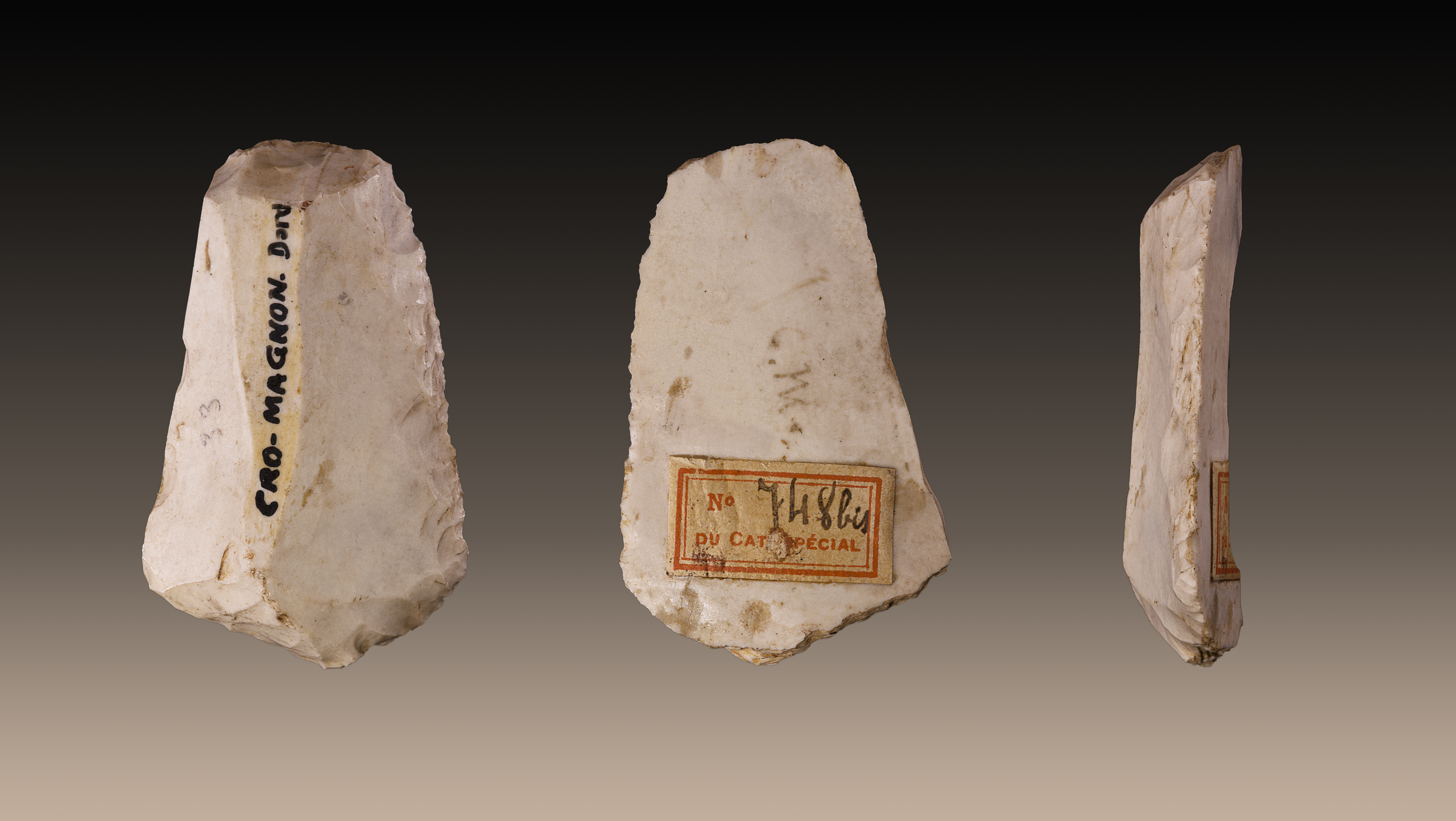 루이 라테가 1868년 3월 크로마뇽 동굴지구에서 처음으로 발견했다. 동굴에는 화석을 보호하는 역할을 하던 바위들이 주위에 있었다고 한다. 이 종을 크로마뇽 1이라 명명했다. 두개골은 이마가 높이 나오고 골이 얇은 형태이며 지금의 인류 생김새와 상당히 유사하다. 프랑스에서 발견된 이후로 다른 유럽 국가와 중동국가에서도 해당 유골이 발견되기 시작했다.[16]