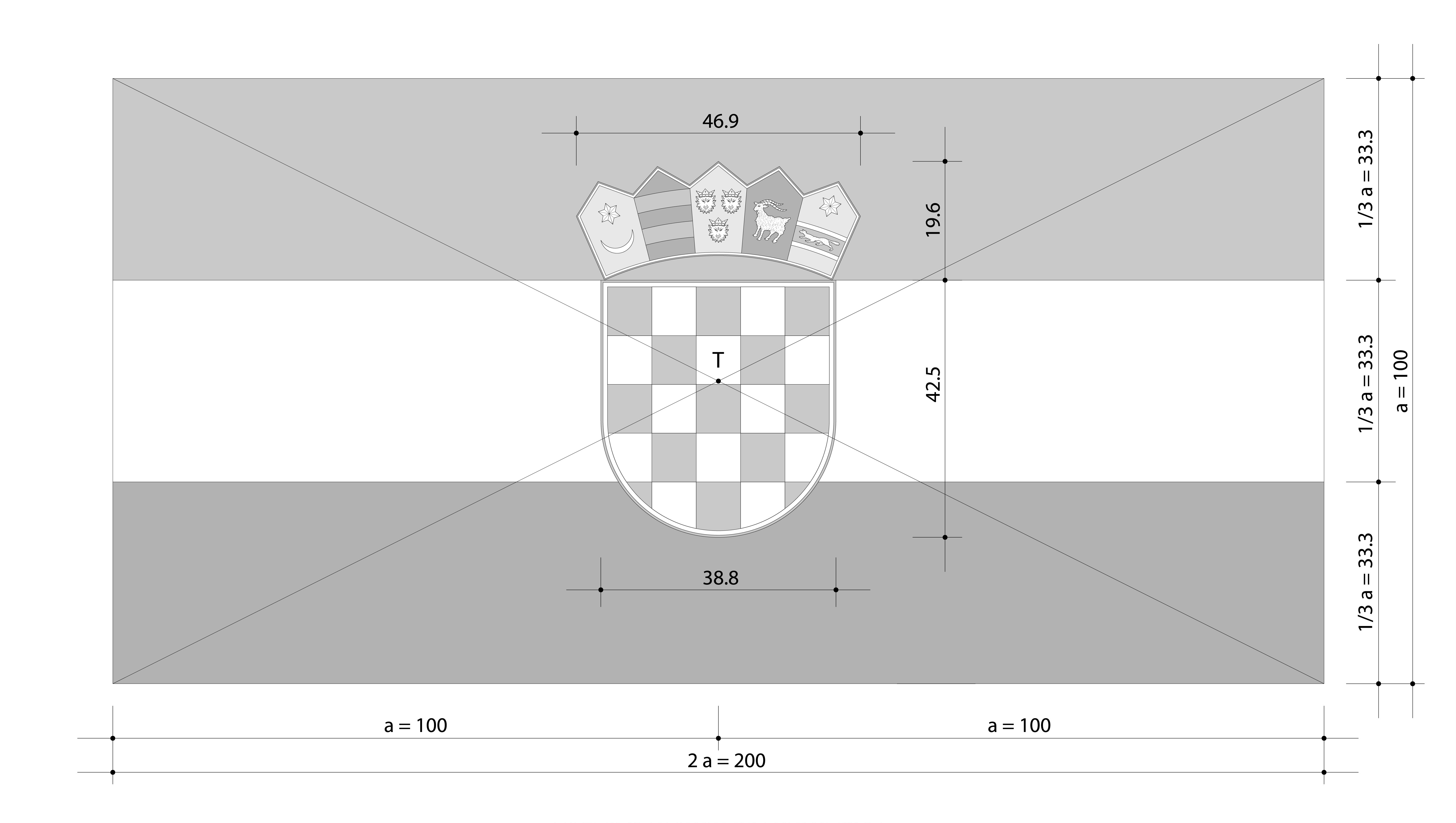 디자인 | 빨강, 흰색, 파랑의 가로 삼색기로 중앙에 크로아티아의 국장이 있음 |