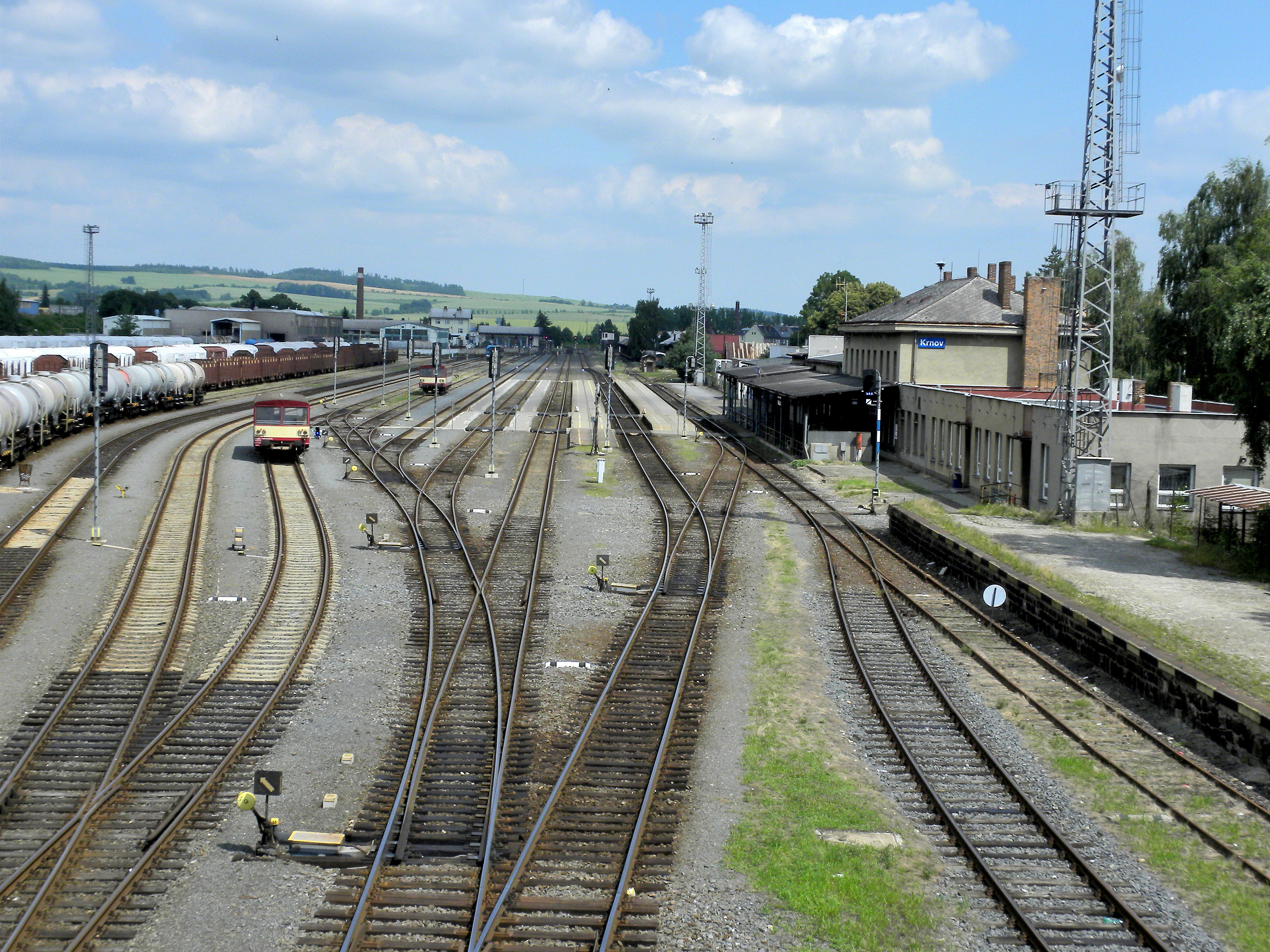 크르노프는 오스트라바–올로모우츠 철도 노선과 크르노프–구호하지 철도 노선 상에 위치한다. 도시 내에는 크르노프역과 크빌린역, 두 개의 기차역이 운영되고 있다.