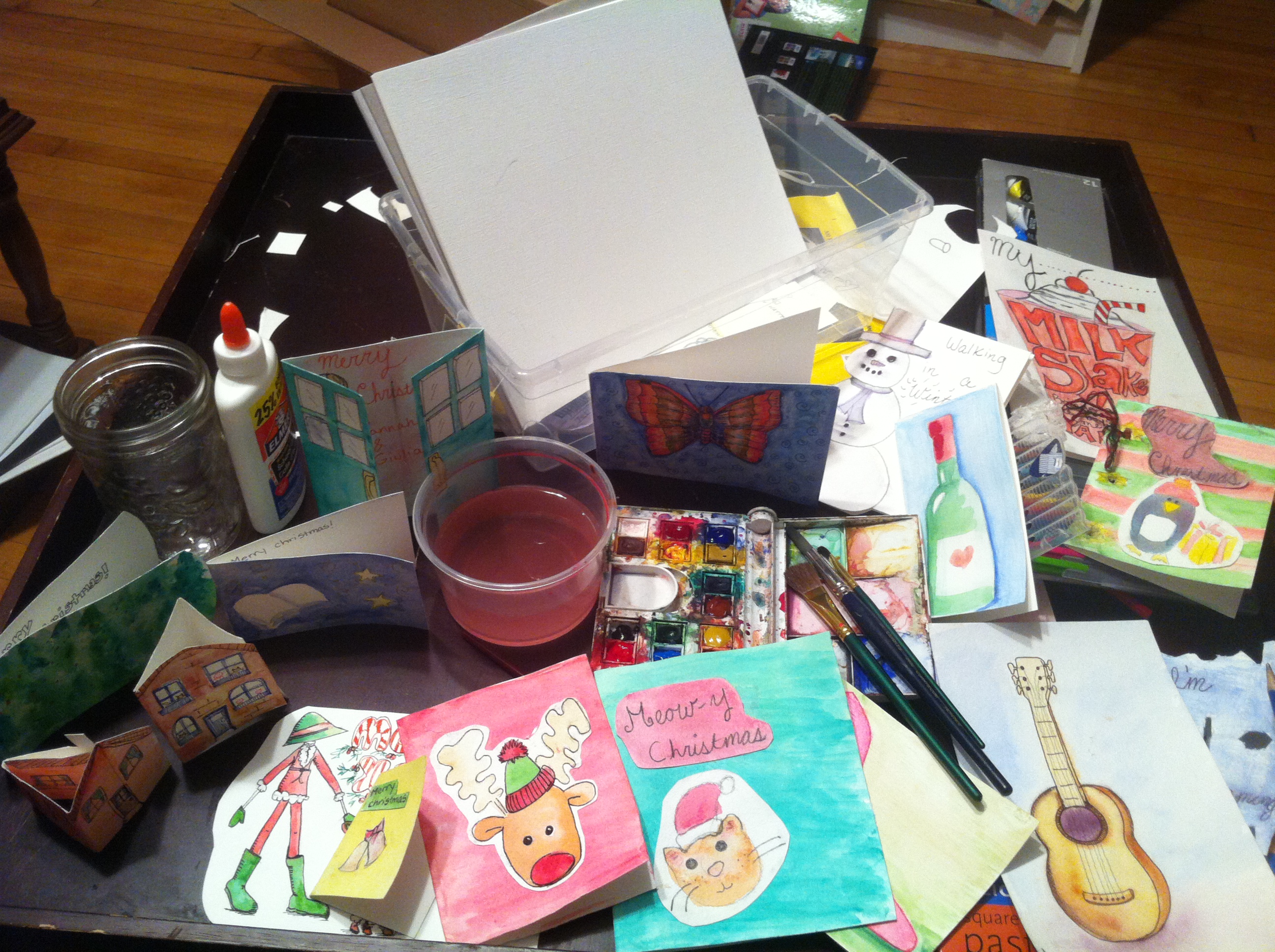 19세기부터 많은 가정과 개인들은 경제적인 이유나 예술적인 시도로, 혹은 크리스마스 카드와 관련된 상업주의를 피하기 위해 직접 카드를 만들었다. 당시에는 상점에서 구매하는 물건보다 직접 만든 선물을 더 가치 있게 여기는 경향이 있어, 수제 카드는 그 자체로 높은 감성적 의미를 지녔다. 많은 가족에게 카드 만들기는 크리스마스 케이크를 굽거나 트리를 장식하는 것처럼 하나의 연례 행사나 계절 축제의 일부가 되었다. 시간이 흐르면서 카드 제작에는 다양한 페인트와 크레용, 콜라주 기법, 심지어 감자를 도려내 찍는 간단한 인쇄 기법까지 사용되었다. 특히 스크랩북과 같은 종이 공예에 대한 관심이 다시 높아지면서 수제 카드의 가치가 올라갔고, 스탬핑, 펀칭, 절단 등에 사용할 수 있는 다양한 도구들도 등장했다.
