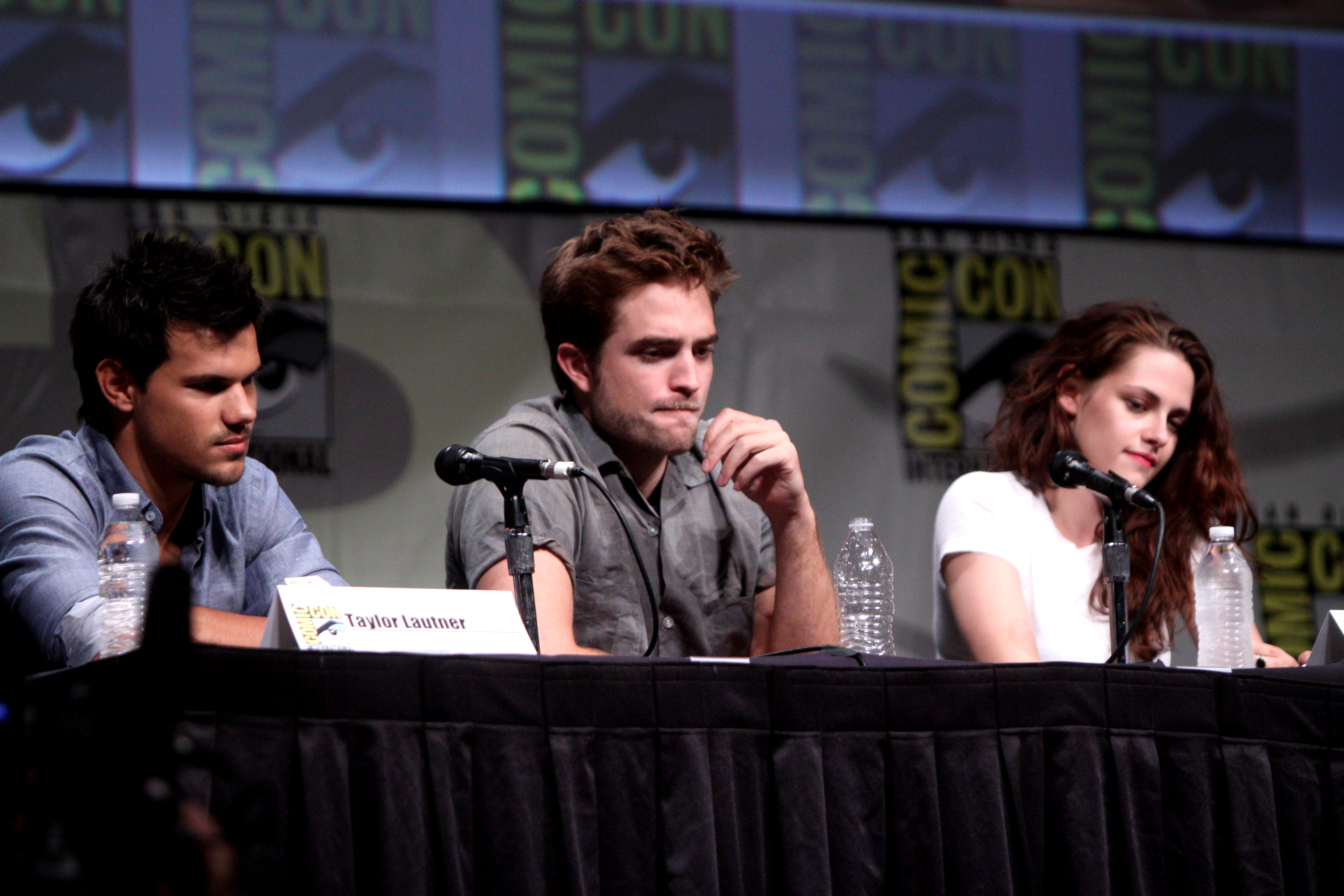 2012년 샌디에이고 코믹콘에서 테일러 로트너 (''왼쪽'')와 로버트 패틴슨 (''가운데'')과 함께 있는 스튜어트