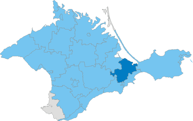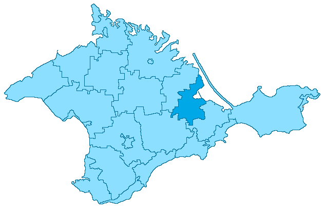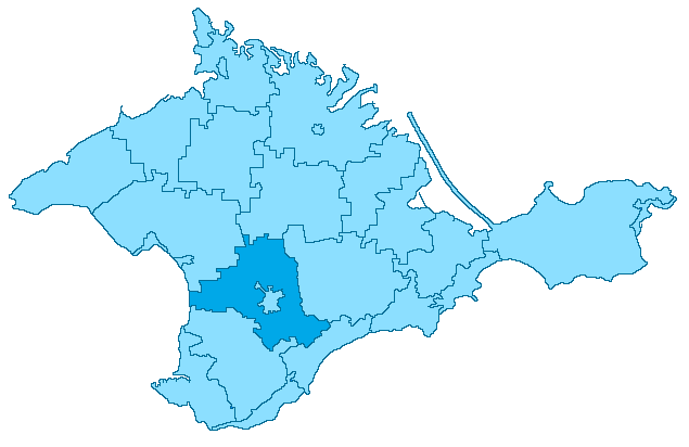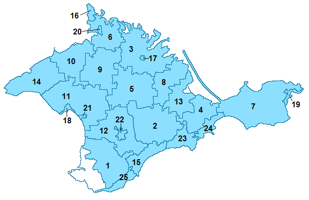 크림 공화국은 14개의 구(''라이온'')와 11개의 시 자치구(''gorodskoj sovet'' 또는 ''gorsovet''), 공식적으로는 ''시 의회가 관할하는 지역''으로 나뉜다.[69]