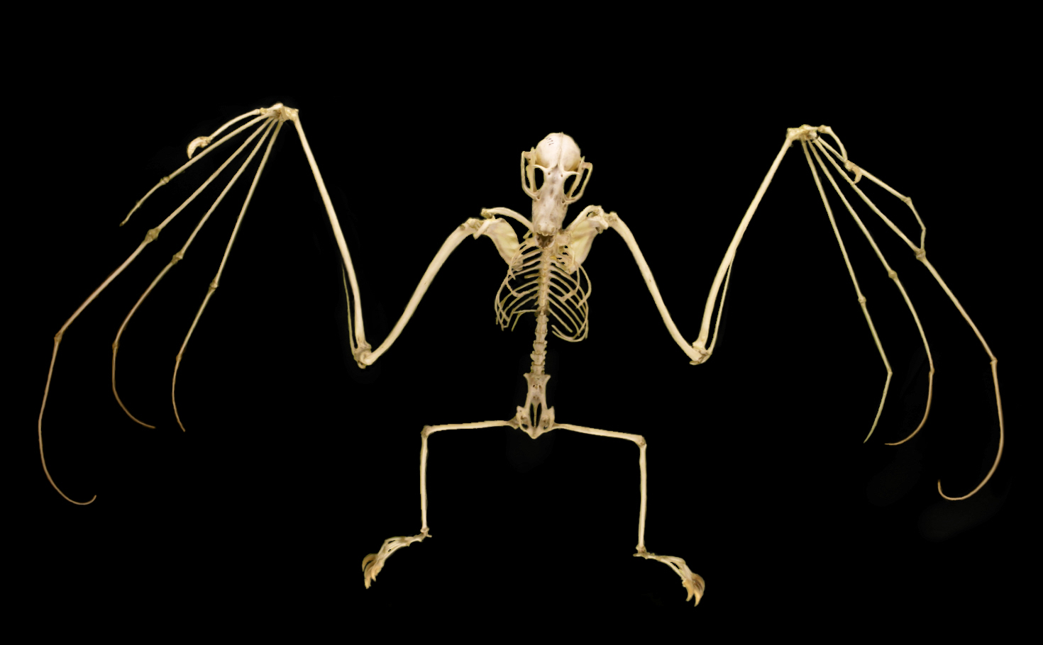 큰박쥐류의 견갑골은 박쥐류 중 가장 원시적인 것으로 여겨진다.[220] 전체적으로 단순한 구조이지만, 몇 가지 특징적인 특징이 있다. 견갑골과 견갑설골근(肩甲舌骨筋)의 연결 부위가 쇄골에서 바깥쪽으로 치우쳐 있으며, 이러한 특징은 긴코박쥐과에서도 수렴진화의 예로 볼 수 있다. 어깨에는 잘 발달된 가느다란 근육띠가 있으며, 목덜미에서 엄지손가락 밑동까지 이어지는 occipito-pollicalis 근의 건을 피부에 고정하고 있다.[226][219]