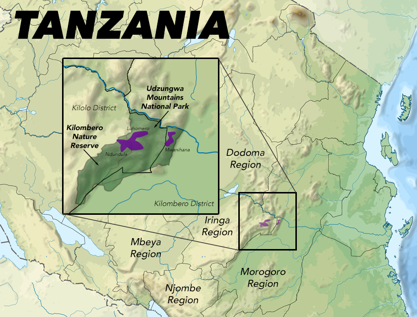 ''Rhynchocyon udzungwensis'' 분포도