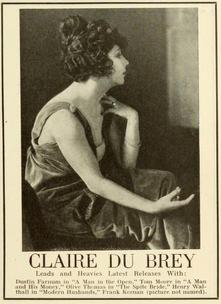 클레어 두 브레이는 1892년 아이다호주에서 태어나 1993년에 사망한 미국의 배우이다. 유니버설 픽처스에서 영화 경력을 시작하여, 1910년대와 1920년대에 걸쳐 다양한 영화에 출연하며 활동했다. 1930년대 이후 사운드 시대가 도래하면서 주로 작은 역할들을 맡았으며, 배우 에이전트로 활동하기도 했다.