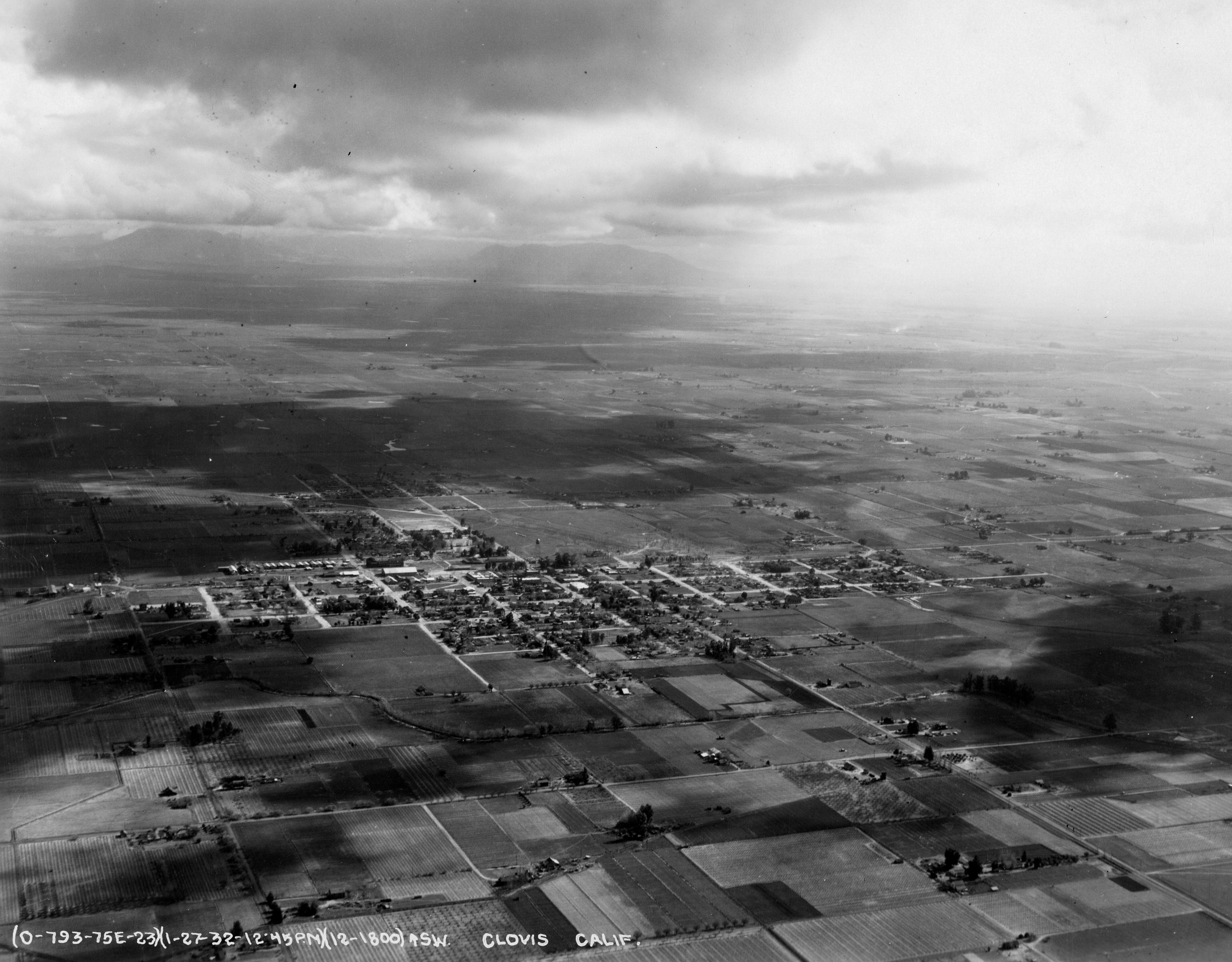 클로비스시는 샌호아킨 계곡 철도를 따라 화물 정류장으로 시작되었다.[10] 1890년 1월 15일, 토마스 E. 휴즈를 포함한 프레즈노 사업가들이 미시간주 철도 투기자 마커스 폴라스키와 제휴하여 샌호아킨 계곡 철도(SJVRR)를 조직했다. 1891년 7월 4일 프레즈노에서 건설을 시작하여 그해 10월에 클로비스 M. 콜과 조지 오언의 농지에 도달했다.[10] 철도는 두 농부로부터 부지를 구매했는데, 동쪽은 콜에게서, 서쪽은 오언에게서 구매하여 두 부동산 사이의 경계선을 따라 선로를 건설했다. 철도는 선로 서쪽에 역을 설치하고 "클로비스"라고 부르기로 합의했으며, 역 이름은 클로비스 콜의 이름을 따서 지어졌다.[10]
