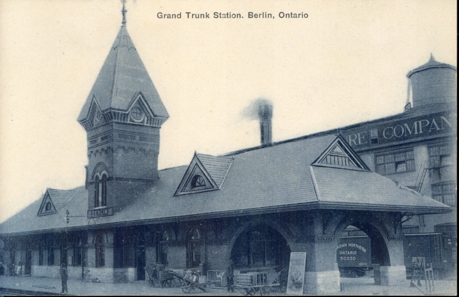 도시가 성장하면서 1856년 역사는 키치너의 늘어나는 승객을 감당하기 힘들었고, 이에 그랜드트렁크는 1897년에 역 건물을 대체하였다.[25] 이 건물에는 고딕 양식의 시계탑이 있었는데, 1908년 화재로 불에 탄 이후 두 번째 탑이 세워졌다. 제1차 세계 대전이 한창 진행 중이던 1916년, 당시 베를린이었던 도시 이름은 반독 감정에 따라 키치너로 변경되었고 역 이름도 키치너역으로 변경하였다.[26]