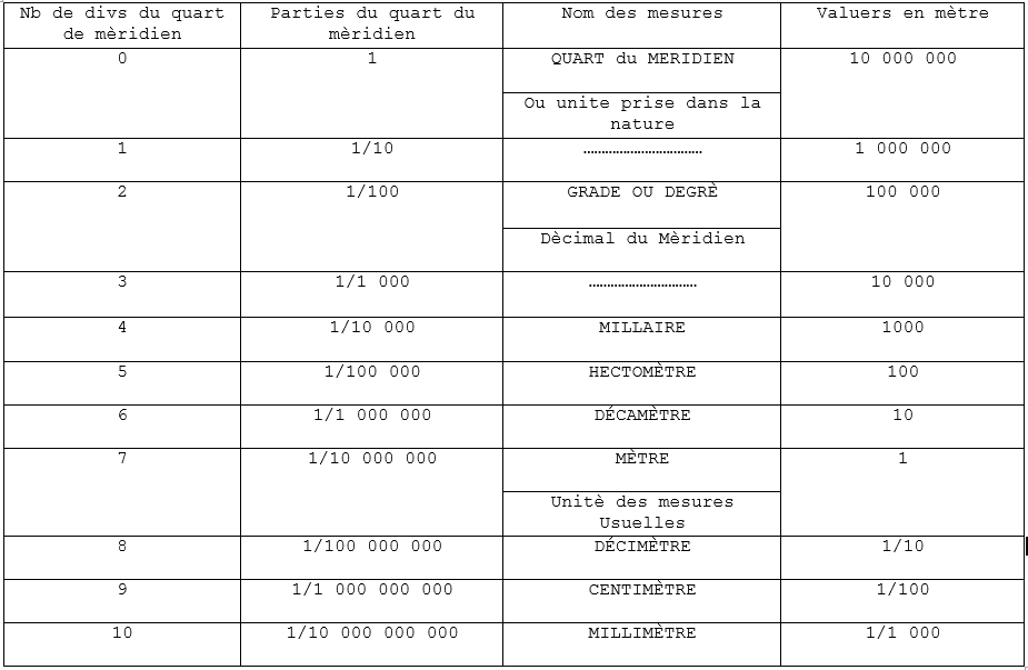 1790년 5월 8일, 프랑스 과학 아카데미는 헌법 제정단의 지시에 따라 새로운 측정 체계를 개발하기 시작했다.[7] 1793년 프랑스 국민공회는 미터를 프랑스 공화국의 유일한 길이 측정 단위로 정했으며, 킬로미터의 최초 이름은 'Millaire'였다.[7]