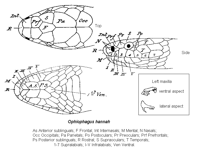 1838년, 칸토어는 킹코브라에 대해 ''Hamadryas ophiophagus''라는 명칭을 제안했으며, 이 뱀이 ''Naja'' 속과 Bungarus 속 사이의 중간적인 치아 특징을 가지고 있다고 설명했다.[8]