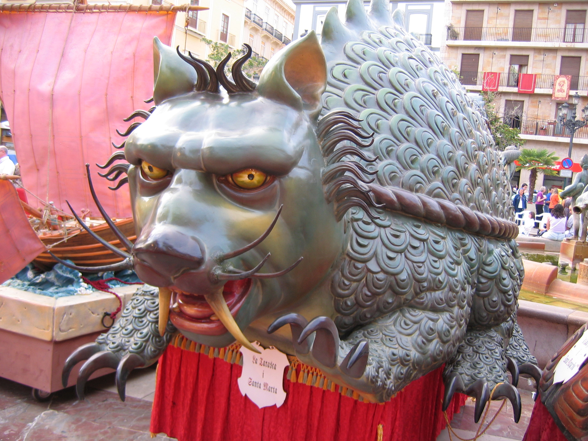 스페인에서는 '''타라스카'''(Tarascaes)라고 불리며, 여러 도시에서 성체 축일 행렬에 그 모형이 등장한다.[5] 타라스카가 행렬에 등장하는 대표적인 도시로는 그라나다, 톨레도,[3] 발렌시아,[3] 마드리드 등이 있다.[4]