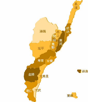 향 | 13 | 비난향(卑南郷) | 다우향(大武郷) | 타이마리향(太麻里郷) | 동허향(東河郷) | 창빈향(長濱郷) | 루예향(鹿野郷) | 츠상향(池上郷) | 뤼다오향(綠島郷) | 옌핑향(延平郷) | 하이돤향(海端郷) | 다런향(達仁郷) | 진펑향(金峰郷) | 란위향(蘭嶼郷) |