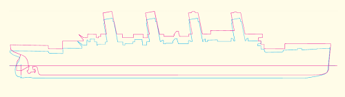 ''타이타닉'' (파란색)과 ''타이타닉 II'' (빨간색)의 프로파일 예비 비교