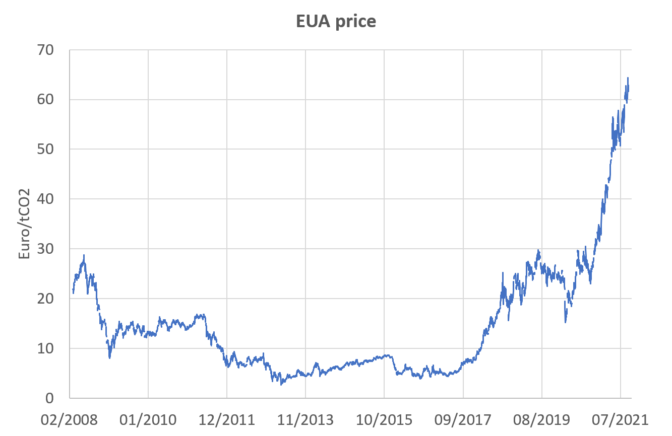 유럽 연합 배출권 거래제 (EU ETS) | 세계 최대 규모의 탄소 시장 발전, 산업, 항공 부문 포함 탄소 가격 상승 추세 |