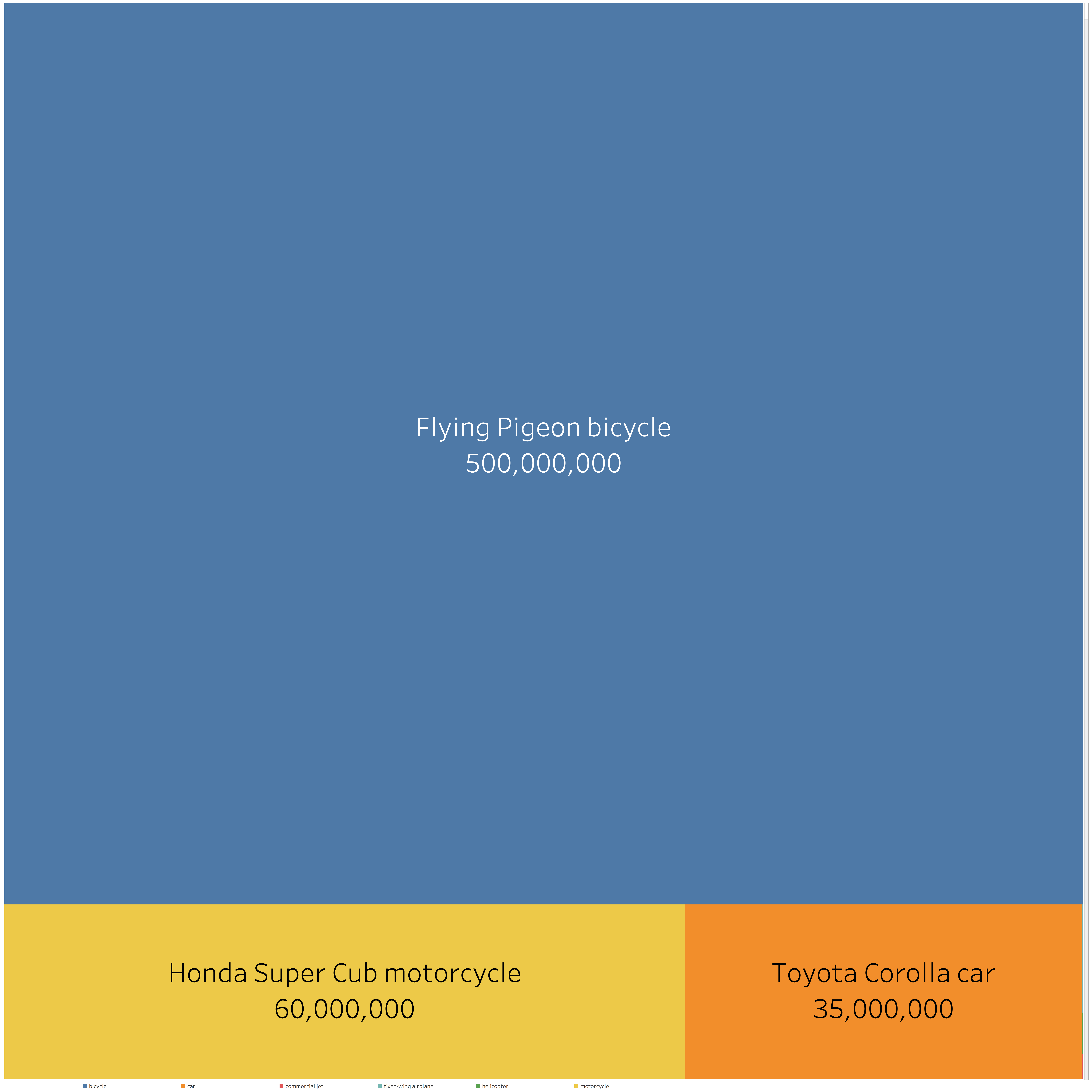 페잉 비둘기 자전거 | 5억 대 이상[28][29] | 단일 차량 모델 중 최다 |