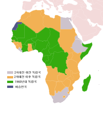 1954년 알제리에서 봉기가 일어나 독립을 요구하자, 프랑스는 정규군 50만 명과 치안부대 30만 명을 동원하여 이를 탄압하였다. 이 과정에서 8만 명의 봉기군이 체포되었고 3만 명이 수용소에 감금되었으며, 프랑스는 5000명 이상의 알제리인을 학살하고 암매장하였다. 알제리 전쟁은 국제 여론에 힘입어 1962년 알제리의 독립으로 종결되었다. 이를 계기로 아프리카 각국은 차례로 탈식민지화하여 독립하였으며, 1963년 독립한 아프리카 국가들은 아프리카 통일 기구를 결성하였다.[112]
