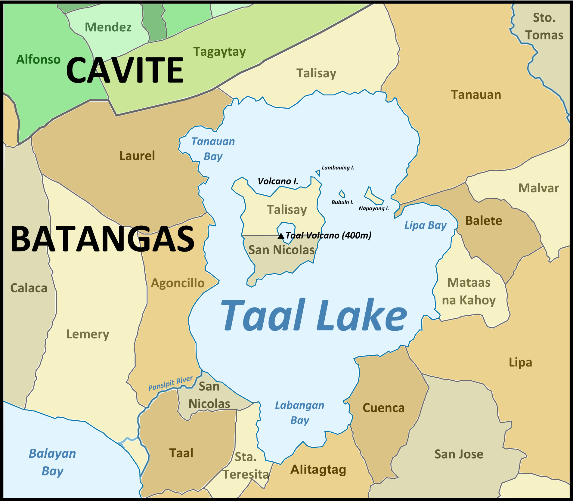 리파, 탈, 살라, 바우안, 타나우안의 ''포블라시온''(마을 중심지)는 화산 활동이 잦아든 후 호숫가에서 수 킬로미터 떨어진 곳으로 옮겨 다시 세워졌다. 1세기가 넘는 시간이 지난 후, 더 큰 마을에서 호숫가를 따라 새로운 정착지들이 생겨났다.