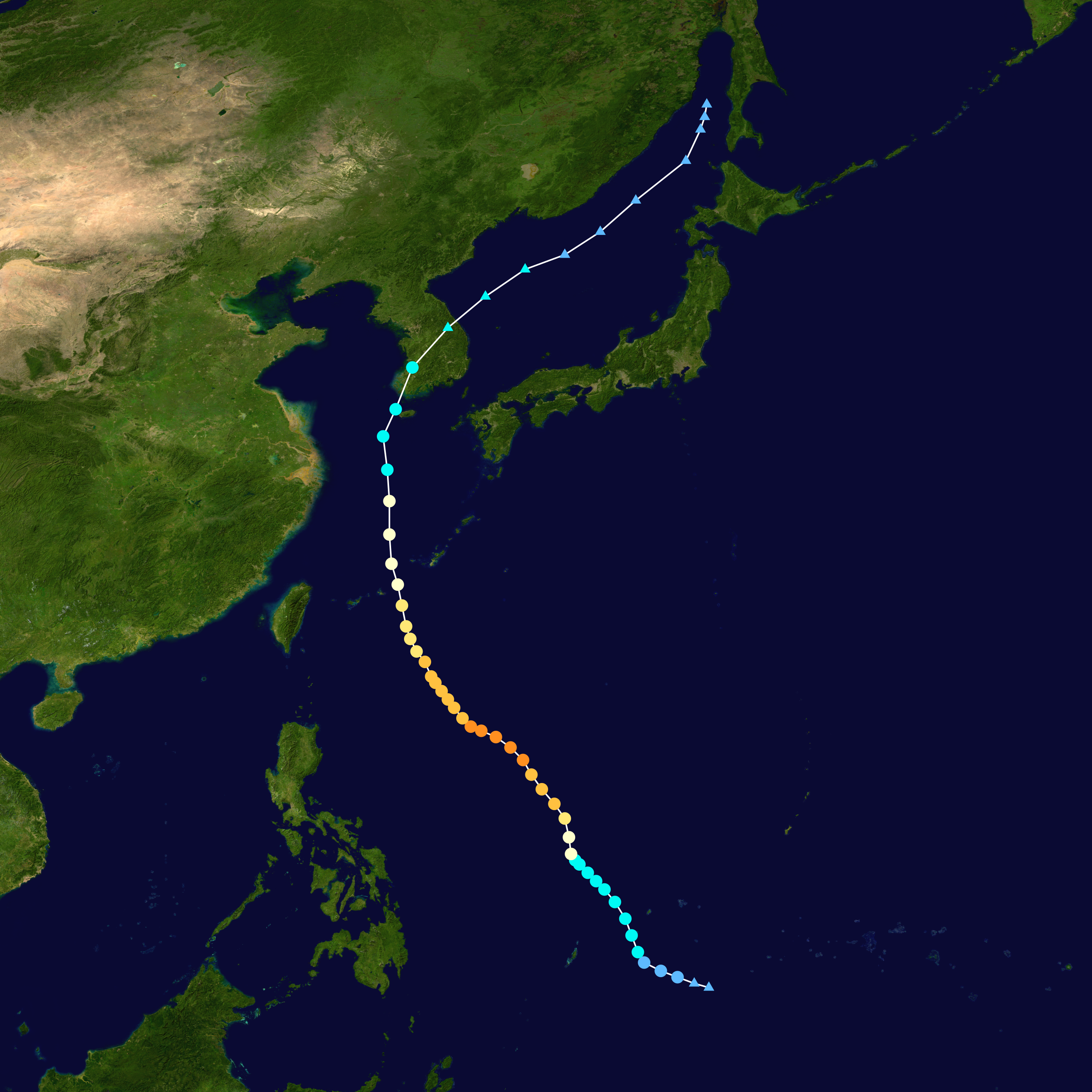 당초 태풍은 황해를 따라 북상하여 백령도 부근을 지나 한반도 북부 지방에 상륙할 것으로 예상되었다. 그러나 실제로는 예상보다 동쪽으로 이동하여 7월 10일 새벽 전라남도 진도군 해안에 상륙했다.[23]이러한 진로 변화는 중국 쪽에서 불어온 강한 편서풍과 동쪽으로 수축한 북태평양 고기압의 영향 때문이었다. 태풍은 북태평양 고기압의 가장자리를 따라 북상하는 특성이 있는데, 이로 인해 예상보다 빨리 육지에 상륙하게 되었다.[23]