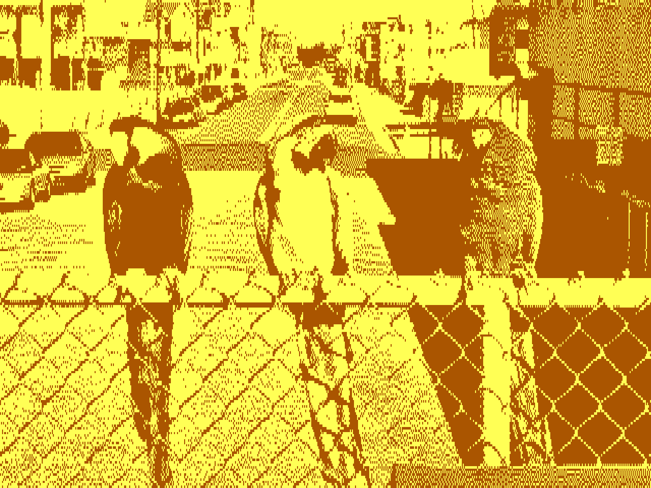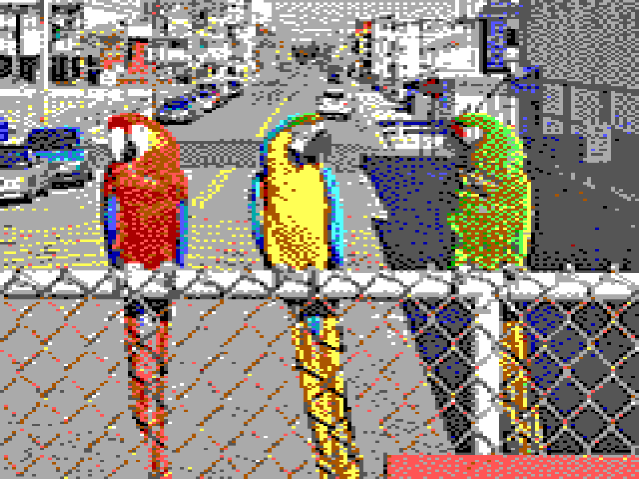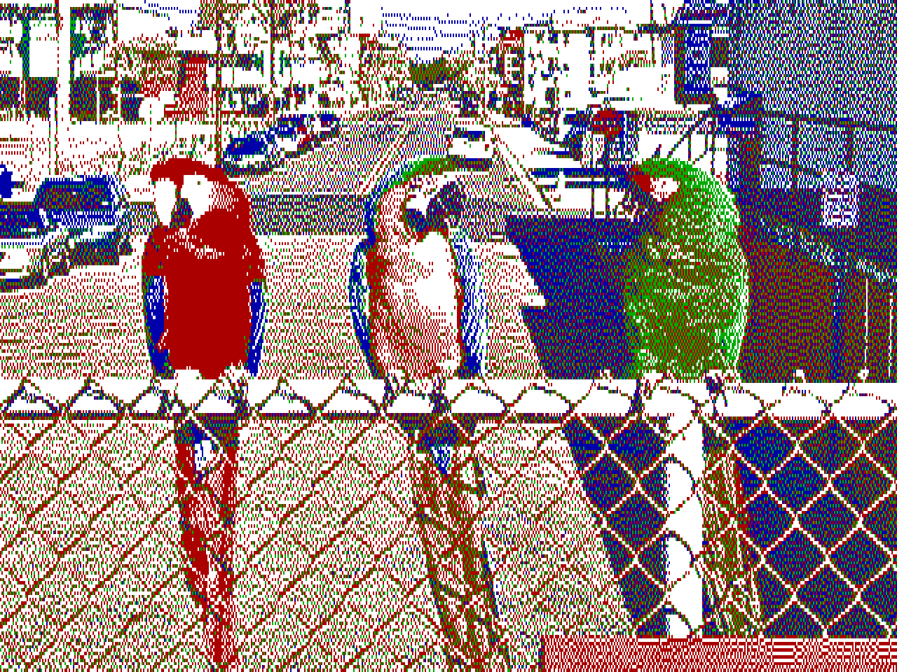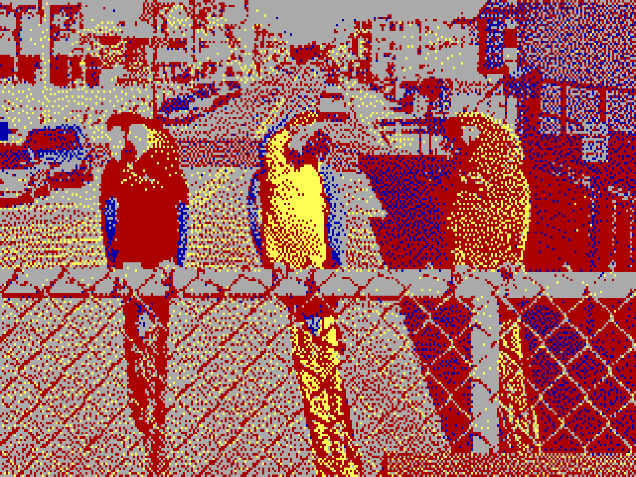 - 320x200 4색 (4비트 RGBI) 하드웨어 팔레트에서. 픽셀 종횡비 1:1.2.