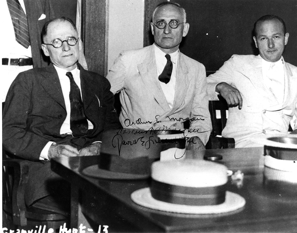 TVA의 초대 이사회 (왼쪽부터): 하코트 모건(Harcourt Morgan), 아서 E. 모건(Arthur E. Morgan), 데이비드 E. 릴리엔탈(David E. Lilienthal)