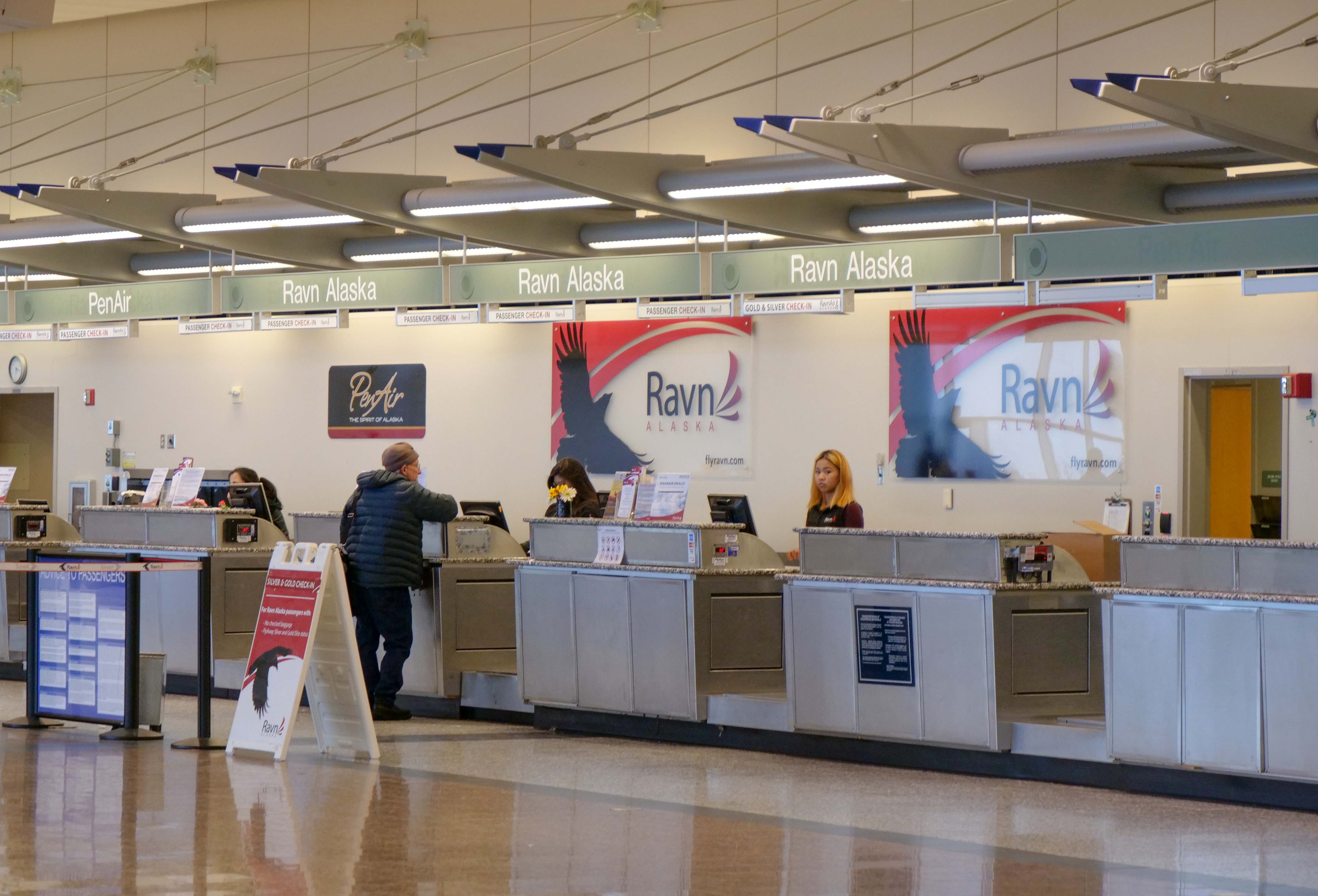 알래스카 항공 | 아닥, 베델, 시카고(오헤어), 코르도바, 데드호스, 딜링햄, 페어뱅크스, 호놀룰루, 주노, 킹 샐먼, 코디악, 코체부, 라스베이거스, 로스앤젤레스, 놈, 피닉스, 포틀랜드, 시애틀(타코마), 우트키아그빅 계절편: 덴버, 카훌루이, 코나, 미니애폴리스/세인트폴, 뉴욕(JFK), 솔트레이크시티, 샌디에이고, 샌프란시스코[39] |