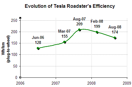 - 2009년 10월 27일, 로드스터는 호주 내륙에서 열린 글로벌 그린 챌린지에서 단일 충전으로 501 km를 주행하며, 생산 전기차 부문 세계 최장 거리 기록을 경신했다.[209][210]