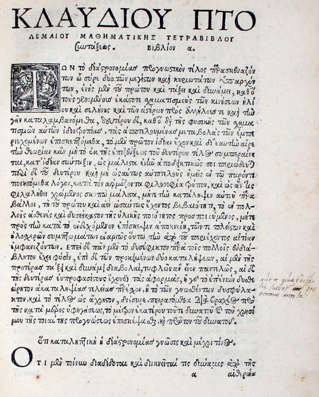 프톨레마이오스는 《테트라비블로스》 제1권에서 점성술의 기본 원리와 기법을 설명한다. 그는 "시로스"에게 책을 헌정하며, 천문학을 천체의 주기와 움직임을 연구하는 분야와 천체의 움직임이 세상에 미치는 영향을 연구하는 점성술로 구분한다. 그는 두 분야가 상호 보완적이라고 보았다.[175]
