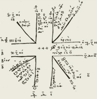 - 행성의 위치: 행성들은 각기 다른 기질과 특성을 지니며, 황도대의 어느 별자리에 위치하는지에 따라 그 영향력이 달라진다. 예를 들어, 화성은 과도한 건조함과 관련되어 파괴적인 행성으로 묘사되는 반면, 목성은 적절한 따뜻함과 습함과 관련되어 온화하고 비옥하게 정의된다.[51]
