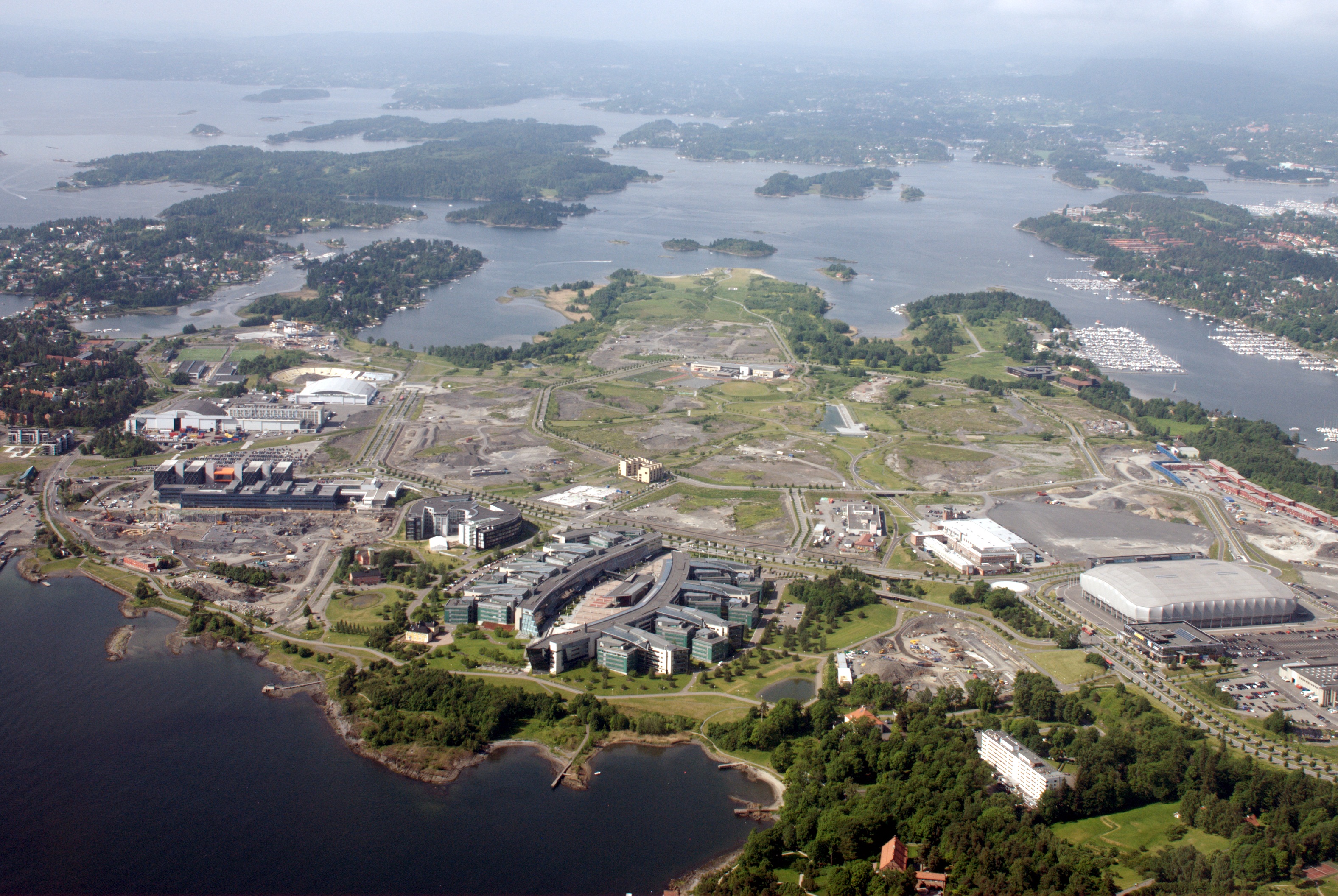 오른쪽에 텔레노르 아레나가 있는 포르네부의 항공 사진