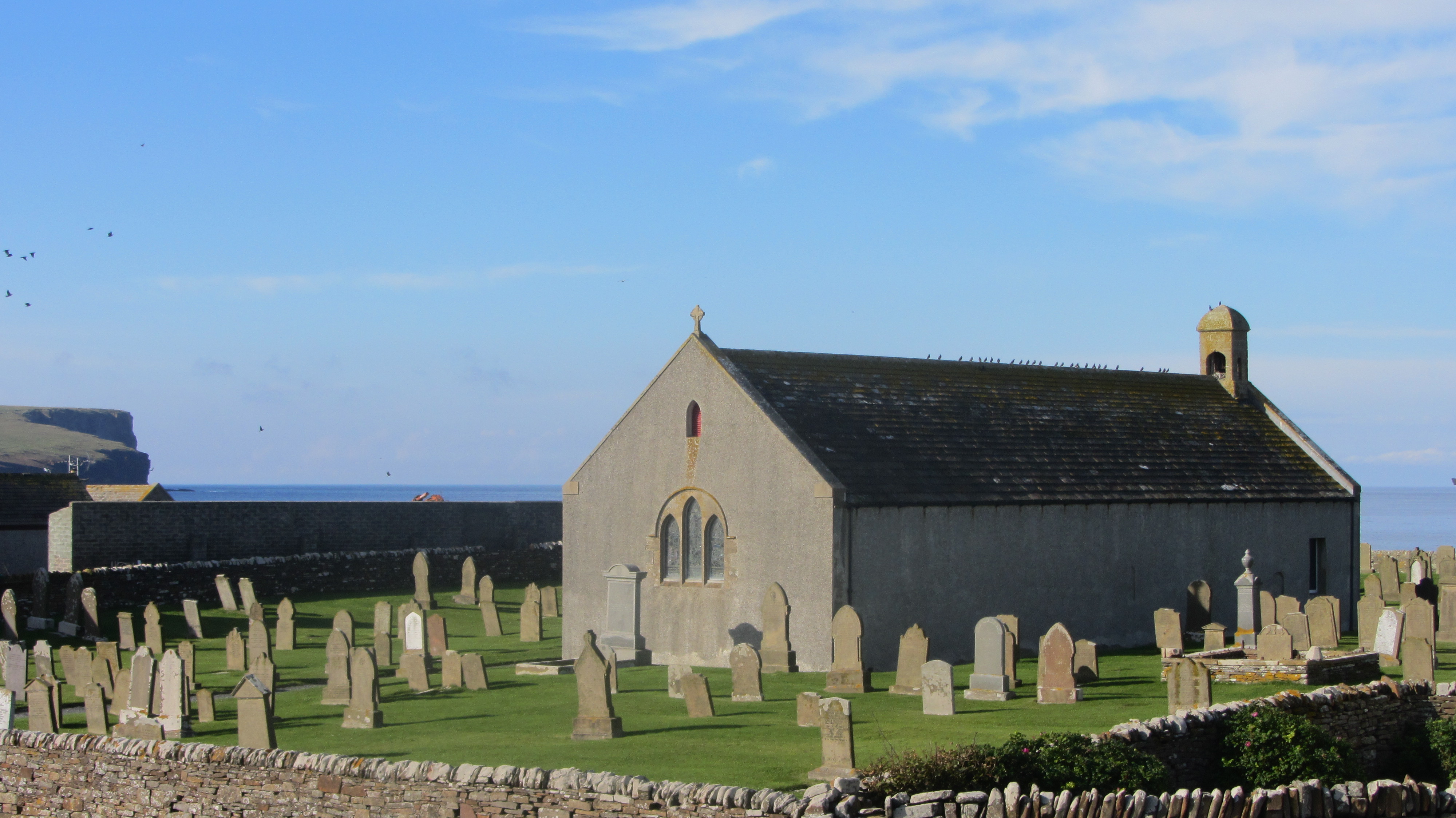 [[파일:Scar_Plaque,_Scar_Viking_boat_burial,_Sanday,_Orkney.jpg|thumb|left|스카 보트 매장에서 발견된 고래뼈 조각, 샌디