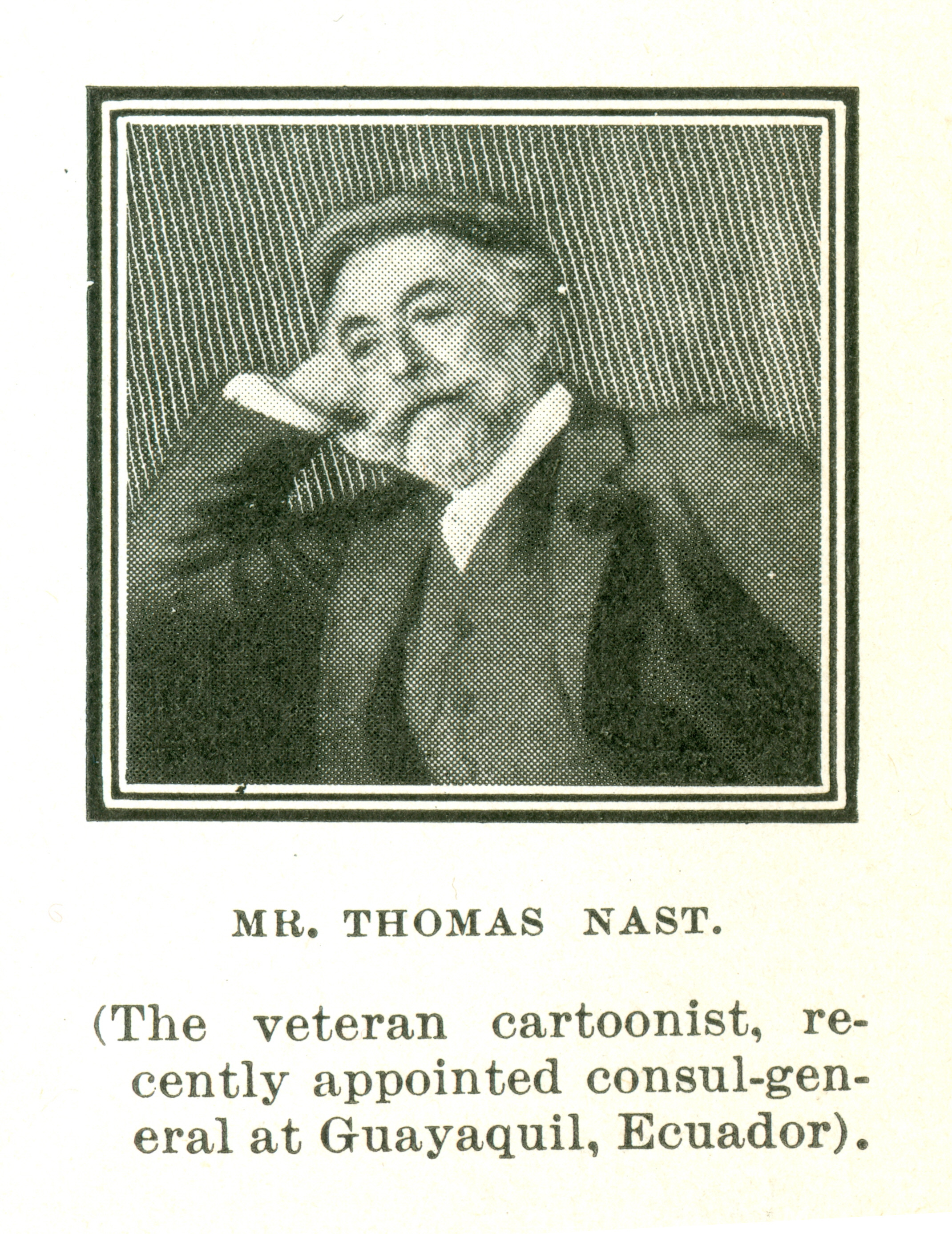 토머스 내스트는 독일 출신의 미국의 만화가로, 19세기 미국 정치 만화 발전에 큰 영향을 미쳤다. 그는 산타클로스, 공화당 코끼리, 민주당 당나귀, 삼촌 샘 등 현재까지 널리 사용되는 정치적 상징들을 창조했으며, 특히 부패한 태머니 홀을 비판하는 만화로 유명하다. 내스트는 남북 전쟁, 재건 시대 등 미국의 주요 사회 문제를 다루며 언론의 자유와 사회 정의를 위해 활동했으나, 반 가톨릭주의 및 반 아일랜드 정서를 드러내기도 했다. 그는 1870년대 이후 인기가 감소했으나, 미국 총영사로 재직 중 황열병으로 사망했다. 그의 유산을 기리기 위한 상이 존재했으나, 인종차별적 편견으로 인해 이름이 삭제되기도 했다.