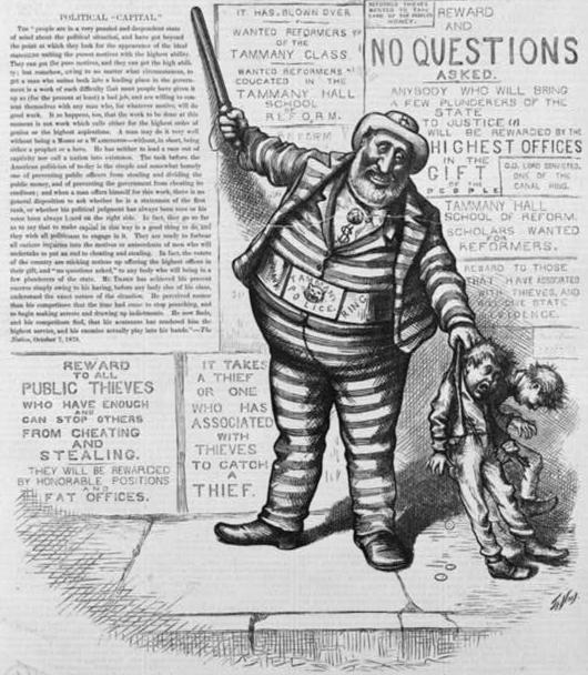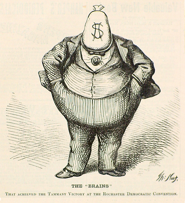 내스트의 그림은 보스 트위드와 태머니 홀 지도자의 몰락에 결정적인 역할을 했다.[39] 트위드는 뉴욕시 공공 사업 위원으로서 1870년까지 도시 정부를 완전히 장악하고 "주 의회에서 과반수를 차지"한 링을 이끌었다.[40] 트위드와 그의 동료들—피터 바 스위니(공원 위원), 리처드 B. 코놀리(공공 지출 관리자), A. 오키 홀 시장—은 링과 관련된 계약자에게 지불된 비용을 과도하게 부풀려 도시에서 수백만 달러를 사취했다.[41] 1867년부터 가끔 태머니의 부패를 공격하는 만화를 게재했던 내스트는 1870년, 특히 1871년에 이 4명의 주요 인물에 대한 집중도를 높였다.[42]