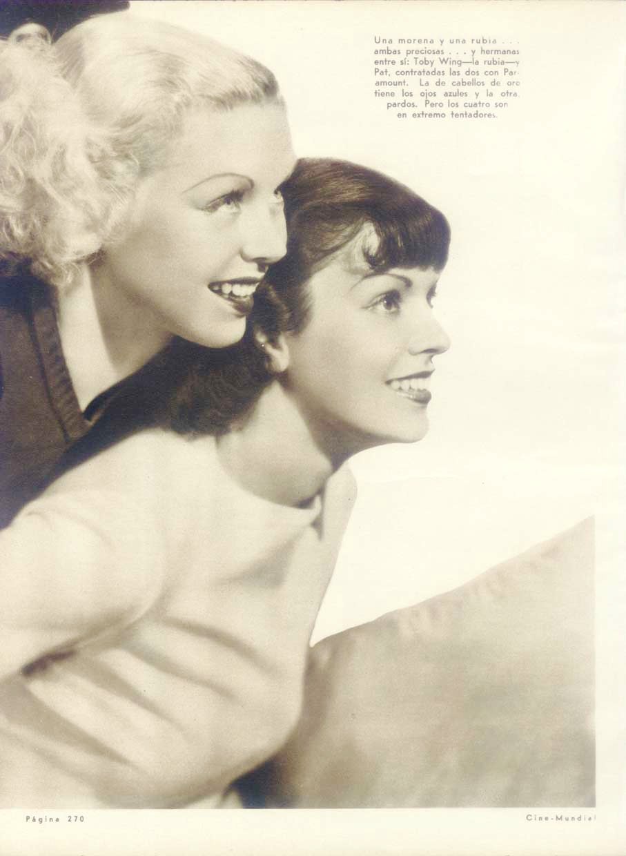 토비 윙은 미국의 배우로, 1924년 아역으로 영화 경력을 시작하여 1930년대에 다양한 영화에 출연했다. 1931년 골드윈 걸스가 되었고, 《펄미 데이즈》를 통해 영화 배우로 활동했다. 1934년 영화 제작 윤리 강령 도입 이전, 노출이 있는 역할로 성적 상징으로 여겨지기도 했다. 1938년 브로드웨이 뮤지컬 《유 네버 노우》를 마지막으로 연기 활동을 마무리했으며, 1960년 할리우드 명예의 거리에 헌액되었다.