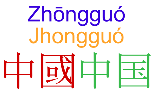 - 한어 병음의 ''zh-''는 ''jh-''가 된다. (웨이드-자일스는 ''ch-''를 사용한다).