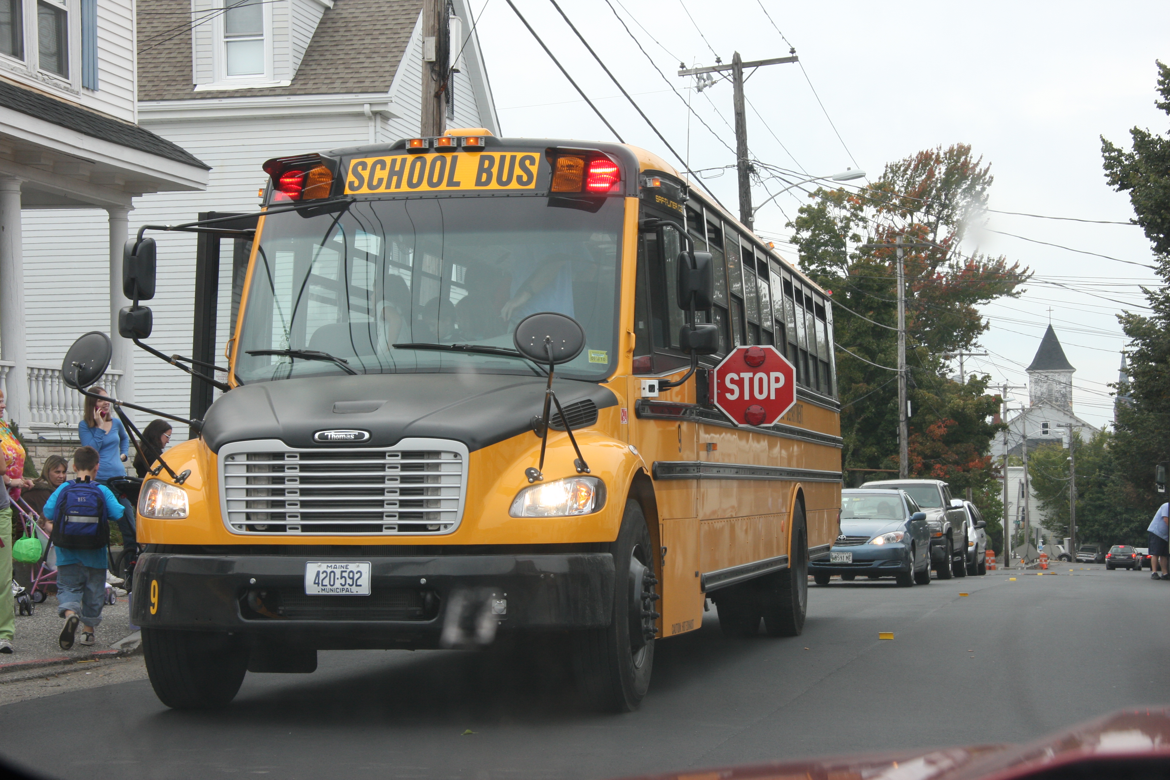 1869년, 매사추세츠 주는 공립 교육에 교통 서비스를 처음으로 추가한 주가 되었고, 1900년까지 16개 주가 학생들을 학교로 수송하게 되었다.[4]