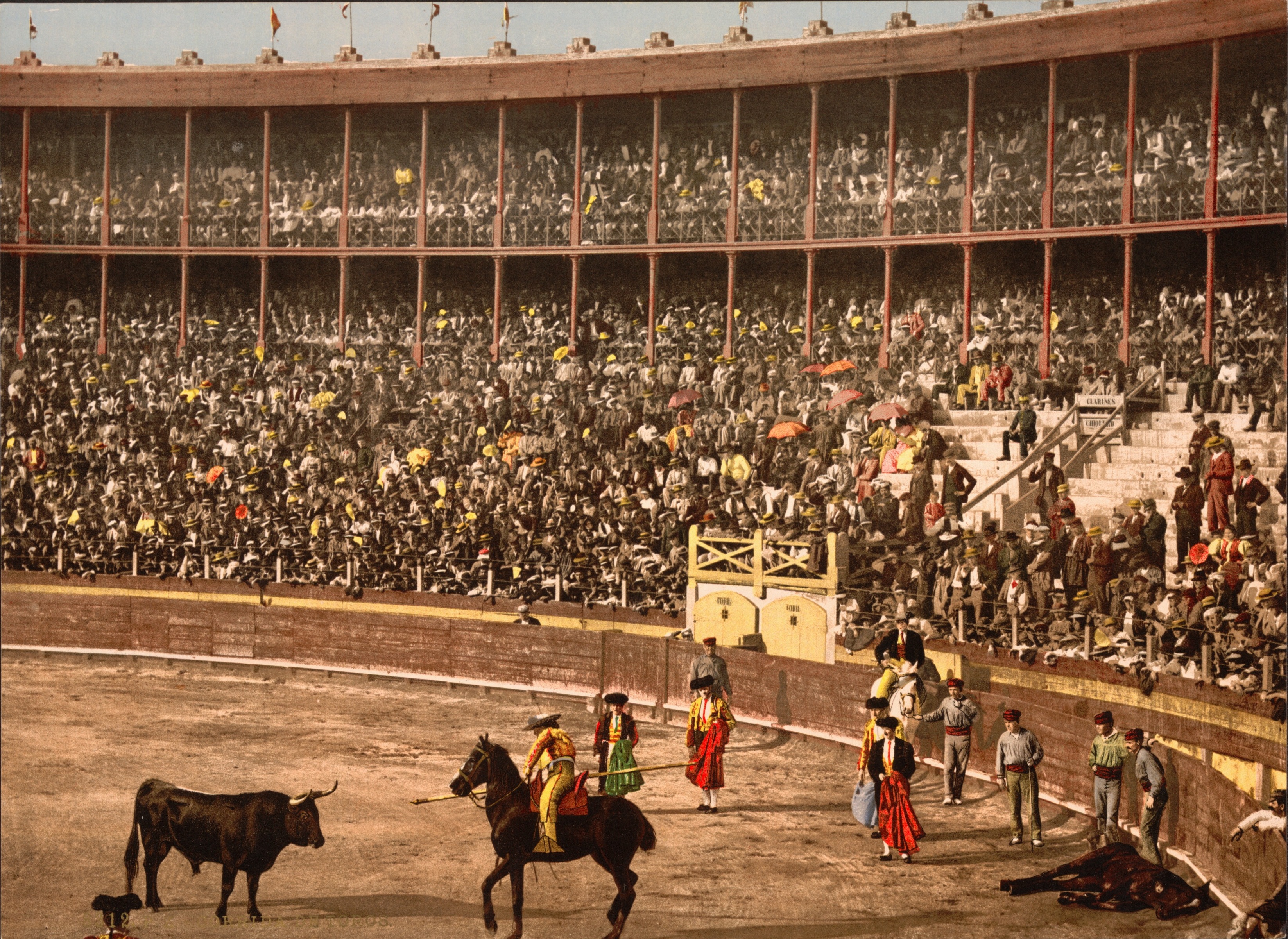 중세 스페인에서 투우는 귀족 스포츠로 여겨졌으며, 말을 탄 투우사가 창으로 황소와 맞서는 방식으로 진행되었다. 샤를마뉴, 알폰소 10세 등이 투우를 즐겼다고 전해지며, 1128년 알폰소 7세의 결혼식에서도 투우가 축하 행사로 열렸다.[9] 18세기에 프란시스코 로메로가 발로 황소와 싸우는 현대 투우의 기초를 확립하면서, 투우는 대중적인 스포츠로 자리 잡게 되었다.