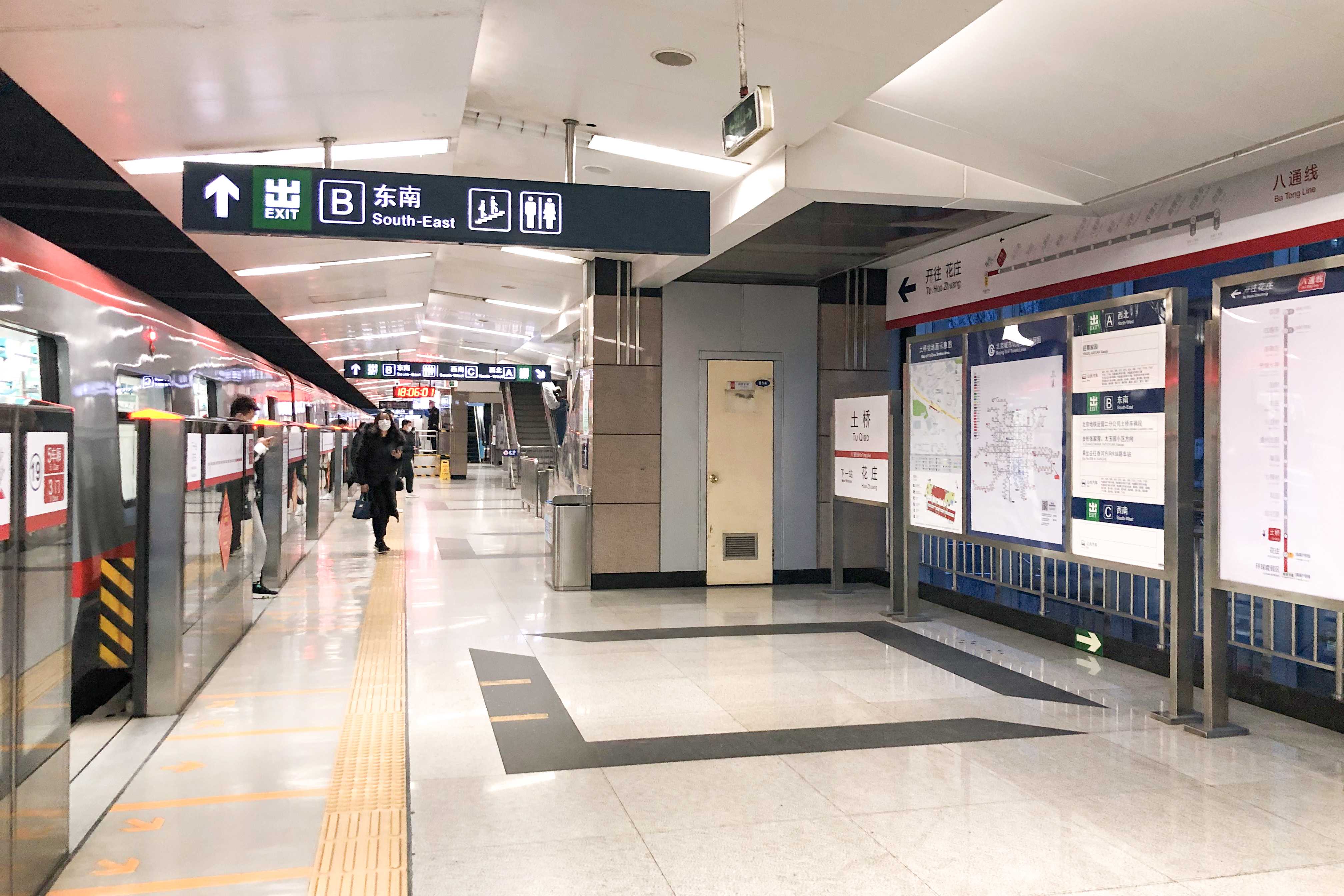 출구 지시 출구 인근 사진 무장애 시설 A 주커수 동로(九棵树东路) 잉시자위안(迎喜家园) 있음 B 주커수 동로(九棵树东路) 베이징 지하철 운영 지점 2분 공사 투차오 차량단(北京地铁运营二分公司 土桥车辆段), 추왕장지완(去往张家湾), 타이위위안 커뮤니티 방향(太玉园小区方向), 938번 버스를 타고 샹허역 방향으로 이동(乘坐去往香河方向938路车站) 없음 C 주커수 동로(九棵树东路) 없음