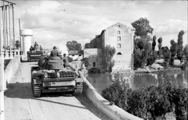 1943년 튀니지 마을에 있는 티거 전차