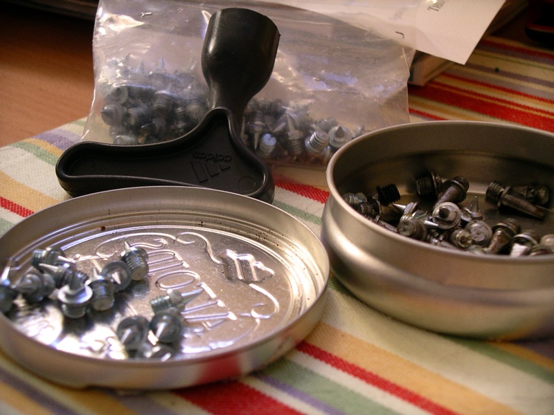 밑창 앞부분에는 스파이크 웰이라고 하는 나사산 구멍이 3개에서 9개 사이로 있는 딱딱하거나 반쯤 딱딱한 스파이크 플레이트가 있다. 스파이크는 스파이크 렌치를 사용하여 각 웰에 나사로 조일 수 있다.[8] 최근 일부 개인은 스파이크를 조이고, 제거하고, 설치하기 쉽도록 스파이크 바닥에 "관통 구멍"을 추가하려고 시도했다.[8]
