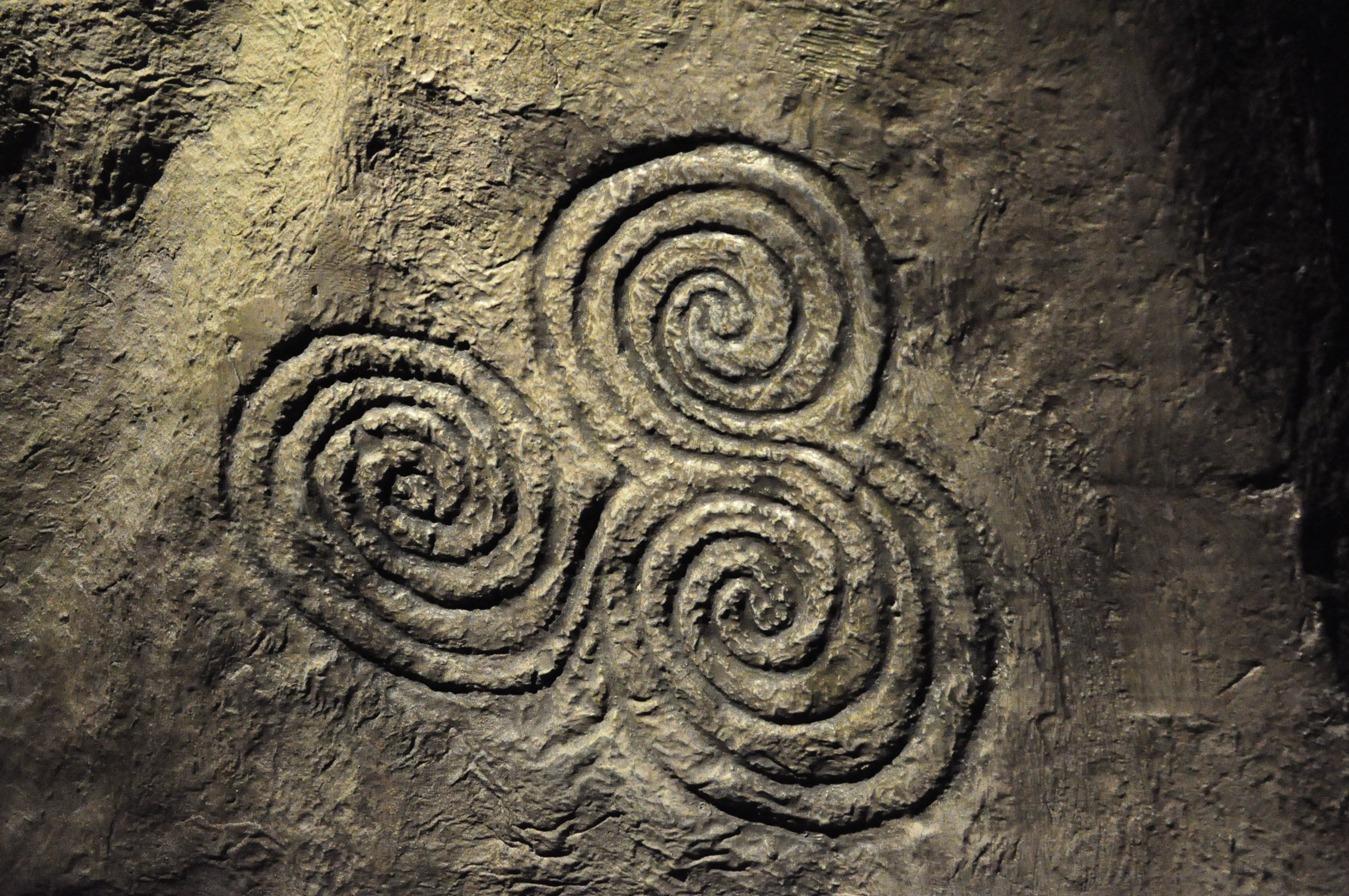 세 개의 나선형 기호 또는 세 개의 나선형 소용돌이는 여러 초기 문화에서 나타난다. 첫 번째는 몰타에서 (기원전 4400–3600년), 두 번째는 기원전 3200년경에 건설된 아일랜드 뉴그레인지의 거석 무덤의 천문 달력에서 나타났으며,[13] 미케네의 선박에서도 발견된다. 신석기 시대의 세 개의 연결된 나선형 기호는 트리스켈리온의 기저에 있는 이미지와 유사한 삼중적인 의미를 가졌을 수 있다.[14] 이 기호는 현재 아일랜드 공화국 미스주에 있는 선사 시대 뉴그레인지 기념물의 주요 입구 근처의 돌 마름모꼴 바위에 새겨져 있다.[13] 또한 기원전 1세기의 돌멘 무덤에서도 발견되는데, 이는 미스주 라스케니에 있다.[15]
