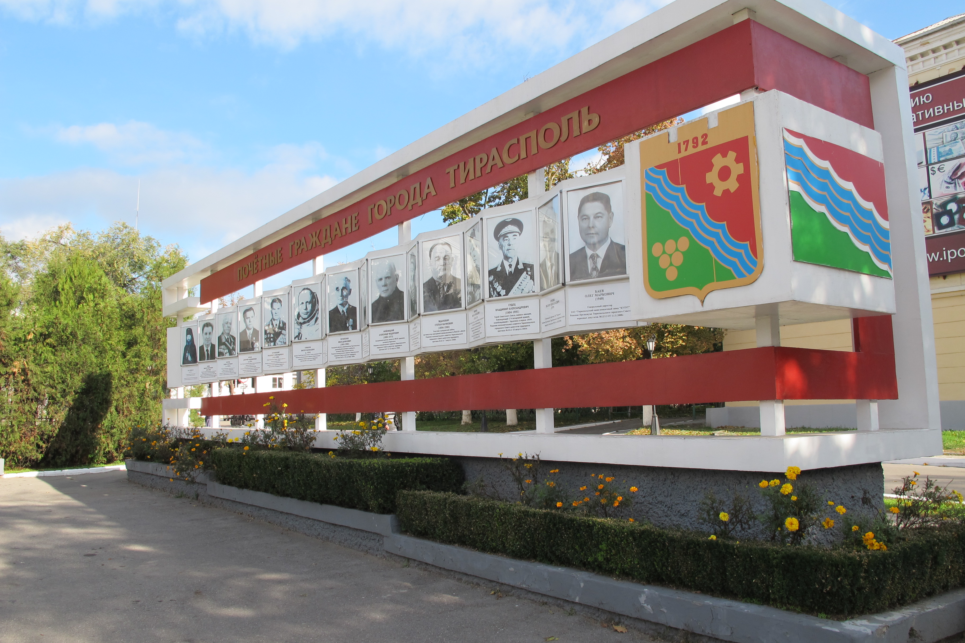 소련 붕괴와 함께 독립한 몰도바 중앙 정부와 대립하고 있는 트란스니스트리아 공화국의 수도이기 때문에, 시내에는 소련 시대를 기념하는 기념비와 동상이 그대로 남아 있다. 정부 청사 앞에는 레닌 동상이 서 있으며, "대조국 전쟁"에서 소련의 대독 승리를 기념하는 T-34 전차가 광장의 기념물로 자리 잡고 있다. 또한 아프가니스탄 침공과 몰도바와 트란스니스트리아 간의 1992년 충돌(트란스니스트리아 전쟁)을 기리는 기념비도 세워져 있다. 이 전쟁의 결과로 러시아 연방군이 주둔하게 되었다.[38]