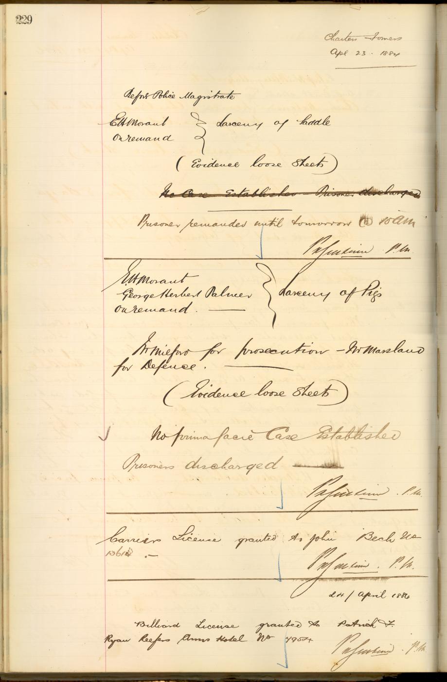 결혼 4주 후, 머런트는 안장과 돼지 32마리를 훔친 혐의로 기소되었다. 체포되었을 때 그는 위조 수표를 썼다는 사실을 부인하기 시작했지만, 곧 훔친 혐의로 체포되었다는 것을 깨달았다. 그는 두 개의 수표를 사용했는데 곧 부도수표가 되었고 두 마리의 말을 샀다. 그는 남서쪽으로 약 465km 더 떨어진 윈턴 마을로 갔지만 절도 혐의는 무죄로 풀려났다. 훗날 인류학자가 된 그의 아내 데이지 베이츠는 머런트/모런트와의 초기 관계를 결코 공개하지 않았다.
