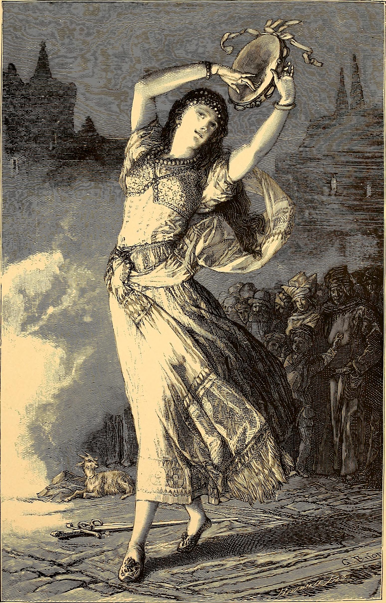 에스메랄다의 아름다움은 여러 남자의 마음을 사로잡는다. 성직자인 프롤로 부주교는 그녀에게 뒤틀린 욕망을 품고, 콰지모도에게 납치를 명령한다. 그러나 이 시도는 근위대장 포베우스 드 샤토페르에 의해 저지되고, 에스메랄다는 자신을 구해준 포베우스에게 반하게 된다. 한편, 시인 피에르 그랭구아르는 우연히 집시들의 소굴인 '기적의 궁정'에 발을 들였다가 에스메랄다와의 형식적인 결혼으로 목숨을 구한다.