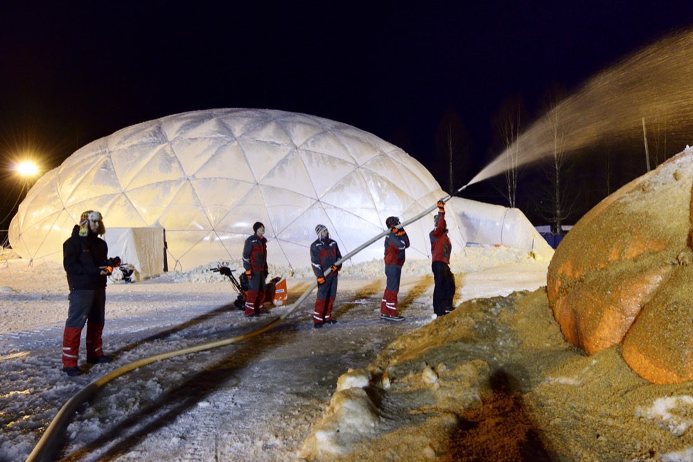 2014년, 아인트호벤 공과대학교는 핀란드 유우카에서 얼음 돔과 사그라다 파밀리아의 파이크리트 축척 모형을 포함한 파이크리트 건축 프로젝트를 진행했다.[14] 그들은 세계에서 가장 큰 얼음 돔을 건설하려고 시도했다. 인적 오류로 인해 풍선을 부풀린 압축기의 플러그가 뽑혀 풍선이 찌그러졌다. 네덜란드 학생들로 구성된 팀은 즉시 풍선을 다시 부풀리고 돔의 붕괴된 부분을 다시 분사했다. 그들은 건설을 계속했고, 결국 돔을 대중에게 공개했다. 그러나 며칠 만에 지붕이 무너져 내렸고, 당시 현장에는 방문객이 없었다.[15]