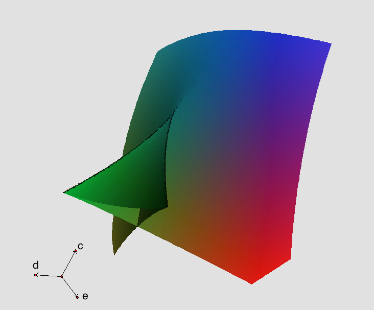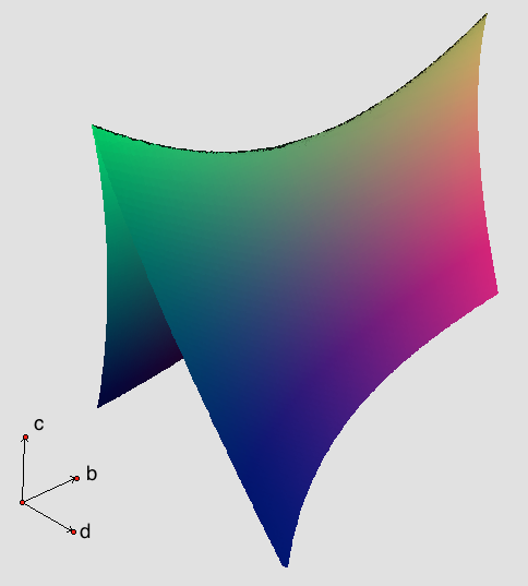 만약 \Delta_4 > 0이고 곡면에 실수 점이 있다면, 이는 쌍곡 포물면 또는 일엽 쌍곡면이다. 두 경우 모두, 모든 점에서 음의 가우스 곡률을 갖는 유리 곡면이다.