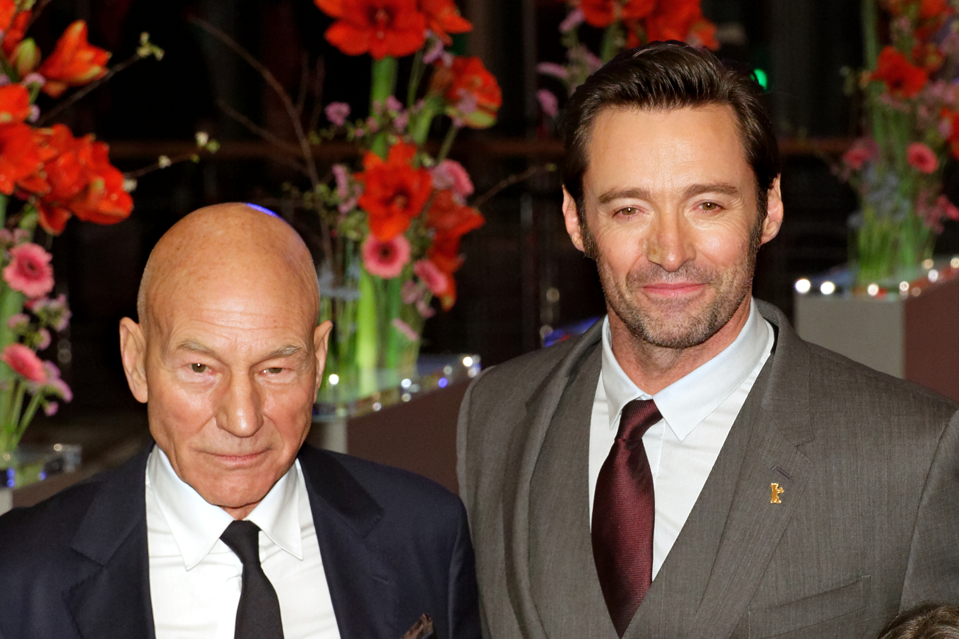2017년 ''로건'' 월드 프리미어에서 스튜어트와 공동 출연 배우 휴 잭맨