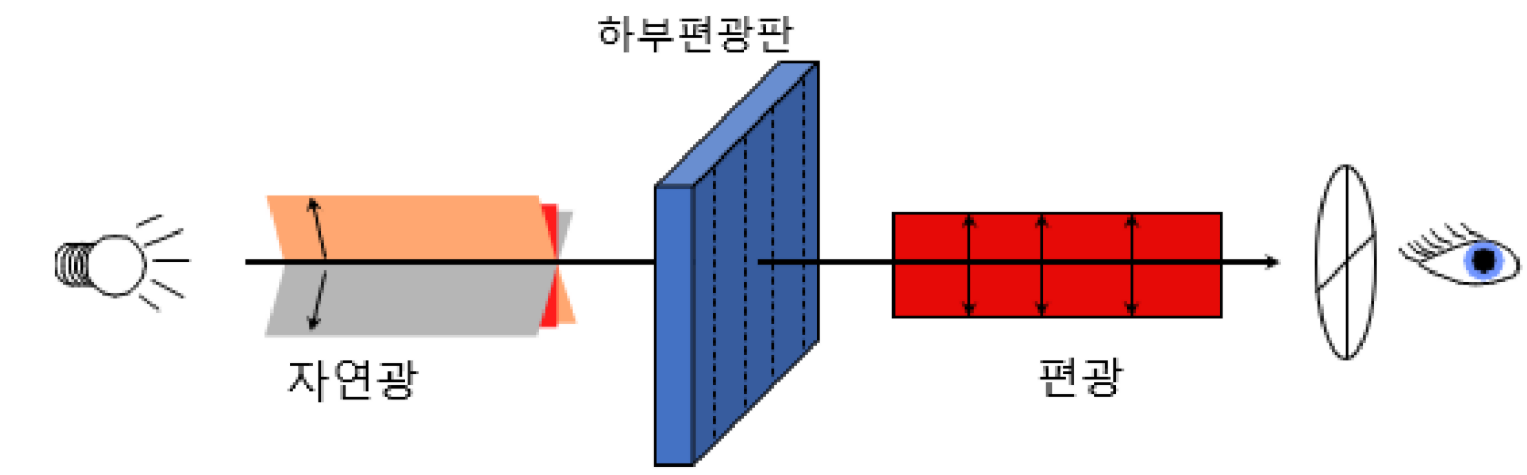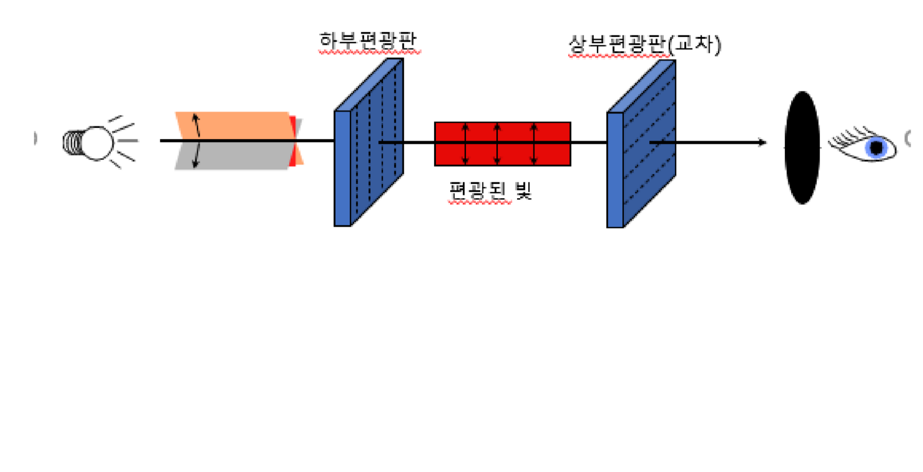 - 편광판 (Polarizer): 광원에서 나온 빛을 특정 방향으로 진동하는 직선 편광으로 만든다. 과거에는 윌리엄 니콜이 개발한 니콜 프리즘을 사용했으나, 현재는 요오드를 첨가한 폴리비닐 알코올 수지 등을 한 방향으로 늘려 만든 편광 필름을 주로 사용한다.